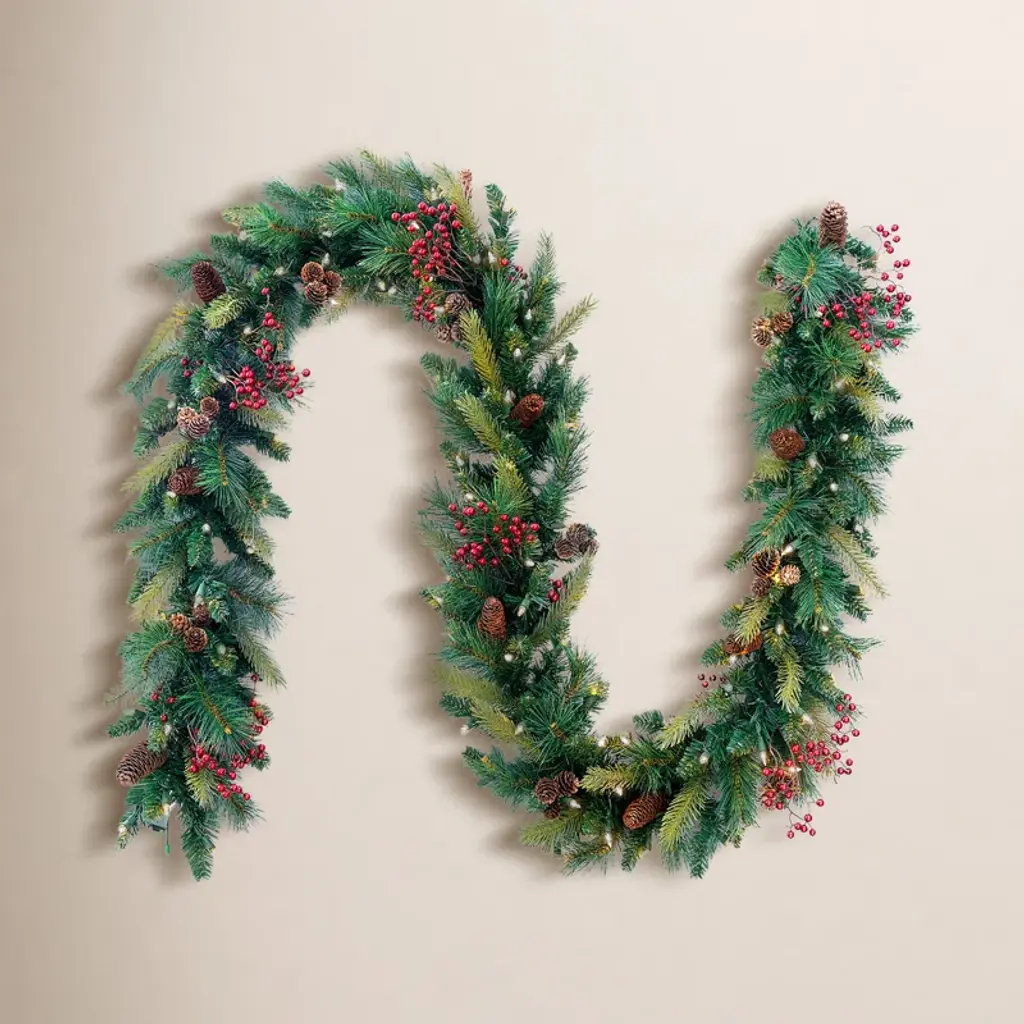 Serene Spaces Living 9Ft Faux Pine Garland With Red Berries And Mini Pinecones