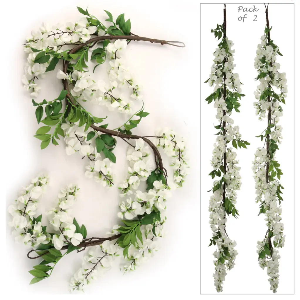 Silk Wisteria Garland 60" 12 Hanging Flowers, Set Of 2