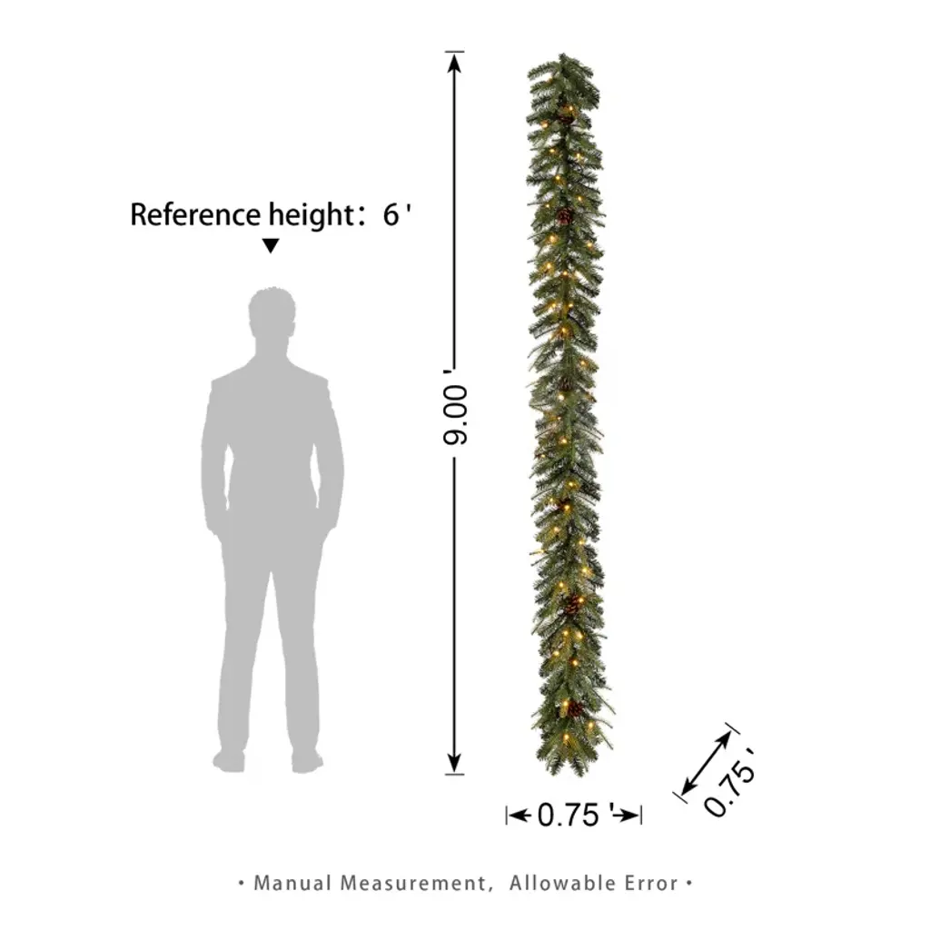 The 9-foot greenery garland provides ample length to easily adorn doors, mantles, or banisters, making this versatile decoration ideal for any situation. Each of the 200 tips is modeled to a pine tree while the green design creates a natural wonderland around your home. Several large pine cone decorations among the needles add an extra holiday touch to this garland. It creates the perfect holiday touch for your home.