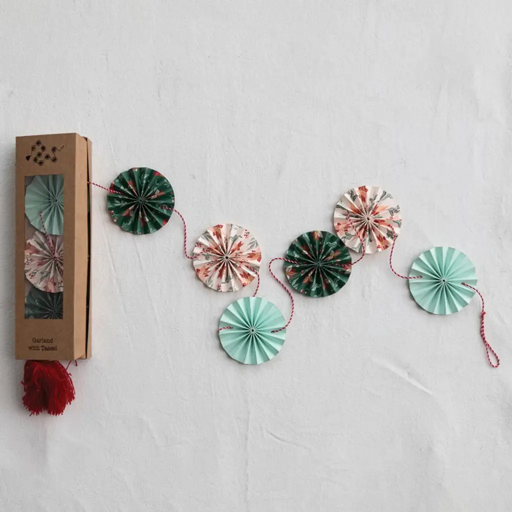Storied Home Handmade Recycled Paper Fan Garland With Cotton Tassel, Multicolor