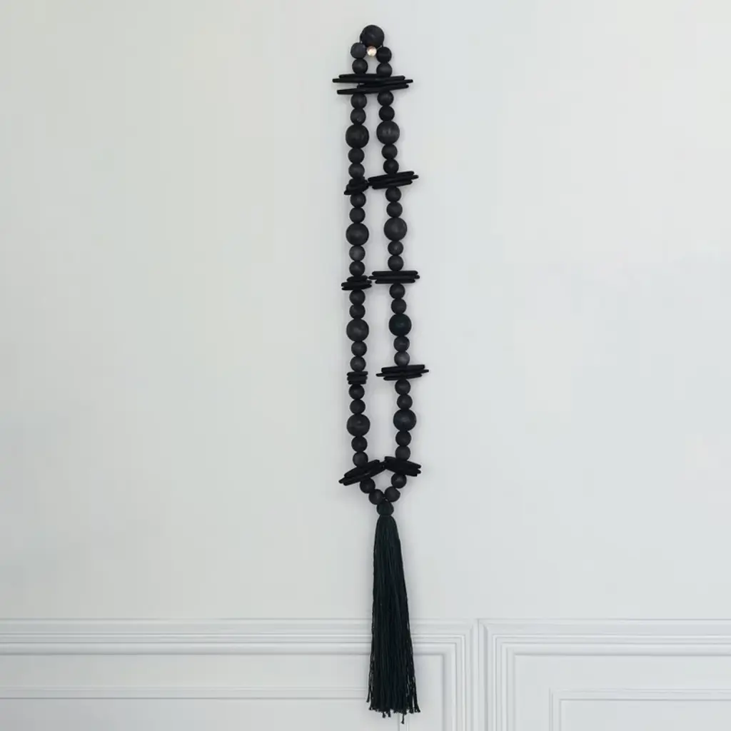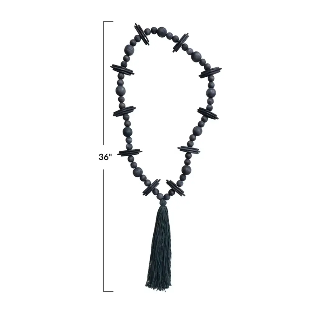 Storied Home Oak Wood Bead Garland With Cotton Tassel, Black