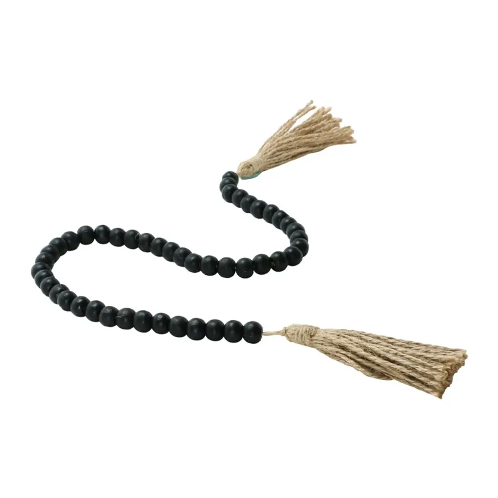 Storied Home Wood Bead Garland With Jute Tassels, Black