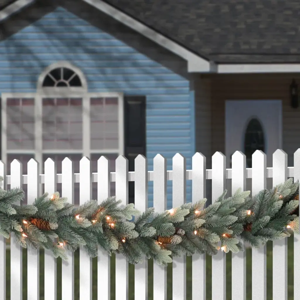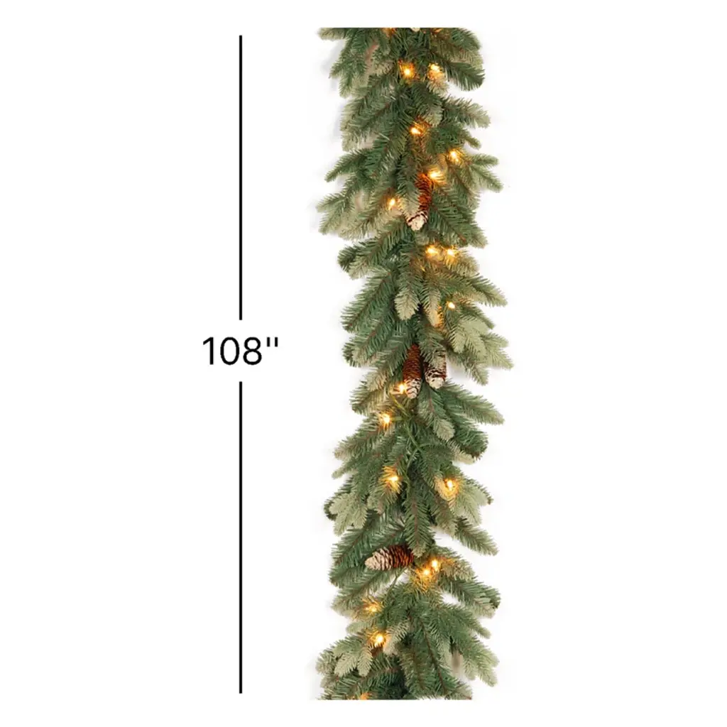 This Spruce Garland features the molded technology for remarkable realism. It is a mixed-tip garland that is trimmed with flocked pine cones. This garland is pre-lit with 50 clear lights that remain lit even if a bulb burns out. This garland can be displayed over doors, windows, fireplace mantels, fences, or stairway railings. For indoor or covered outdoor use.