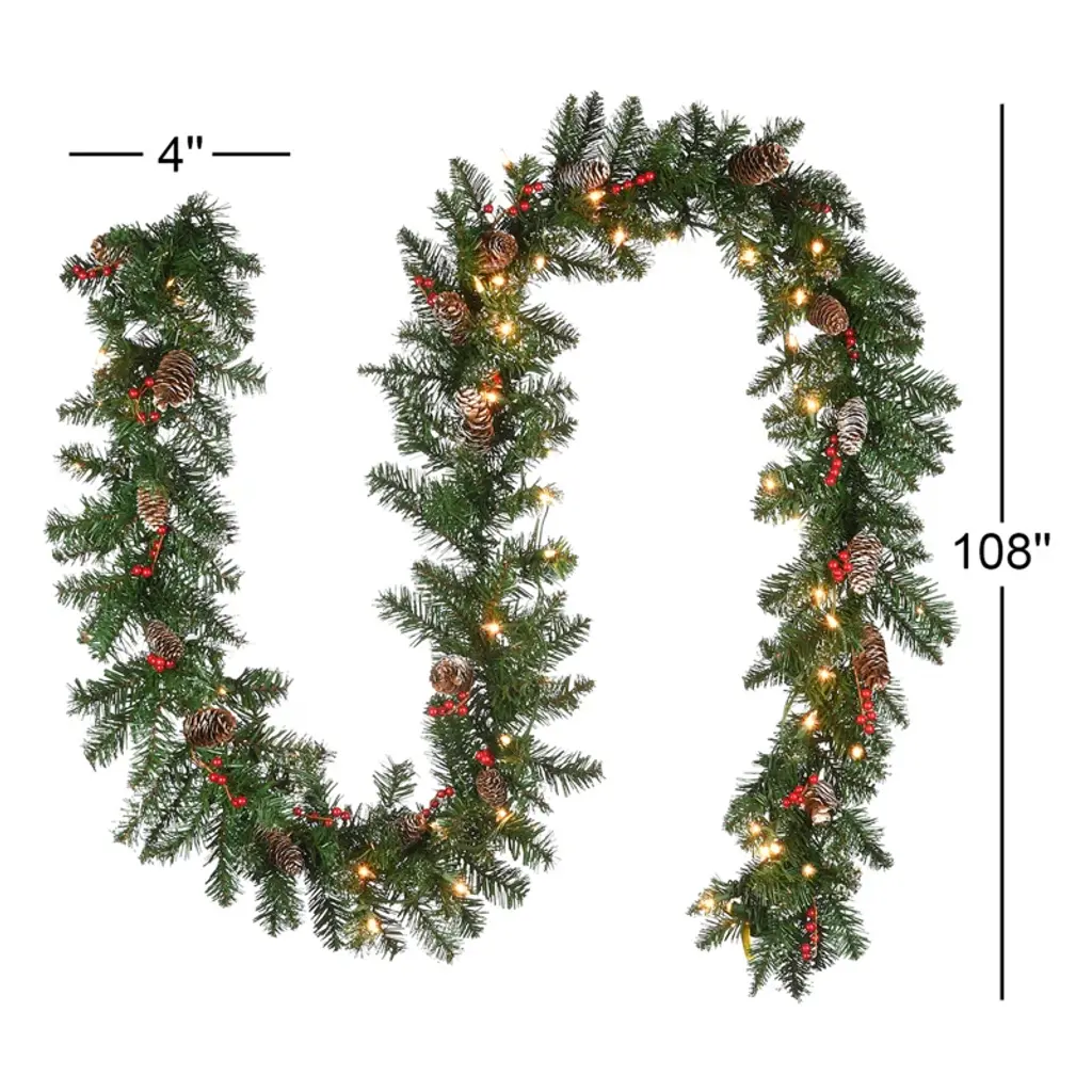 Is it even the holidays if there isn't garland hung all around your home? This artificial spruce garland comes pre-strung with 50 white lights and is trimmed with white-tipped pine cones, red berries, and glitter. You can drape it over doorways, windows, fireplace mantels, fences, or stairway railings. This garland is ideal for indoor use, but it can be used in covered outdoor locations as well. Overall, it measures 10'' H x 10'' D x 108'' L and weighs 4 pounds.