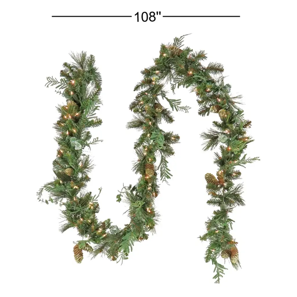 The North Conway Garland is part of the First Traditions Collection and the perfect addition to any entryway, fireplace mantel, or stairway. It is pre-strung with battery-operated 100 warm white LED lights. Trimmed with glittery-edged cones and eucalyptus bringing the perfect combination of traditional Christmas green and sparkle into a home this holiday season.