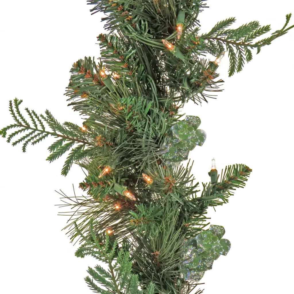 The Holiday Aisle® 9Ft. North Conway Garland With Glittery Cones And Led Lights