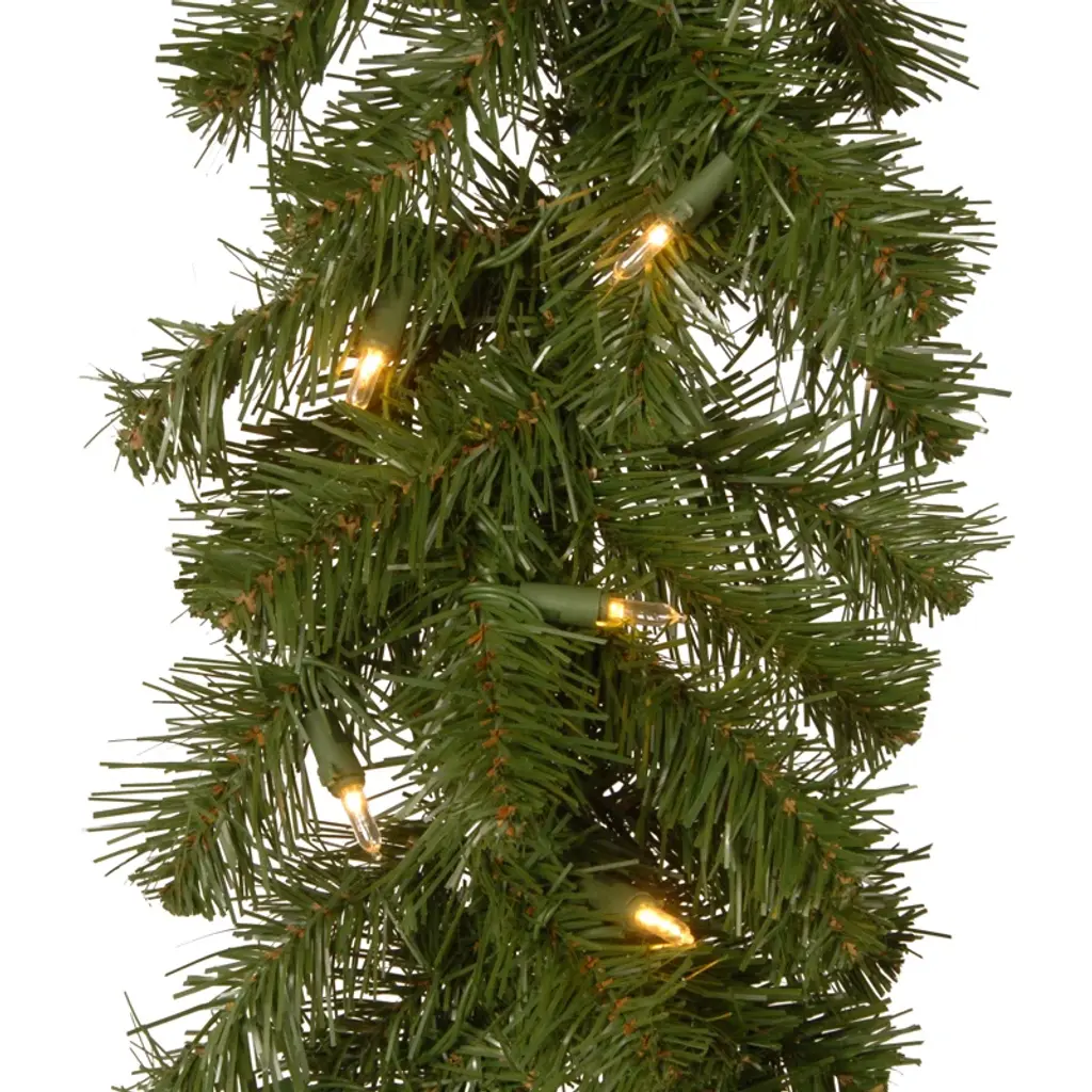Ready any mantel or staircase for the holiday season in seconds with this must-have garland. Made to mimic the real thing, this faux spruce trim stays evergreen year after year, with no watering or preserving needed, and it can be used both indoors and out. Pre-lit with 50 LED lights, it doesn't even need to be plugged in thanks to its convenient cordless design. Made in China, this fire-resistant piece requires three D batteries (not included).