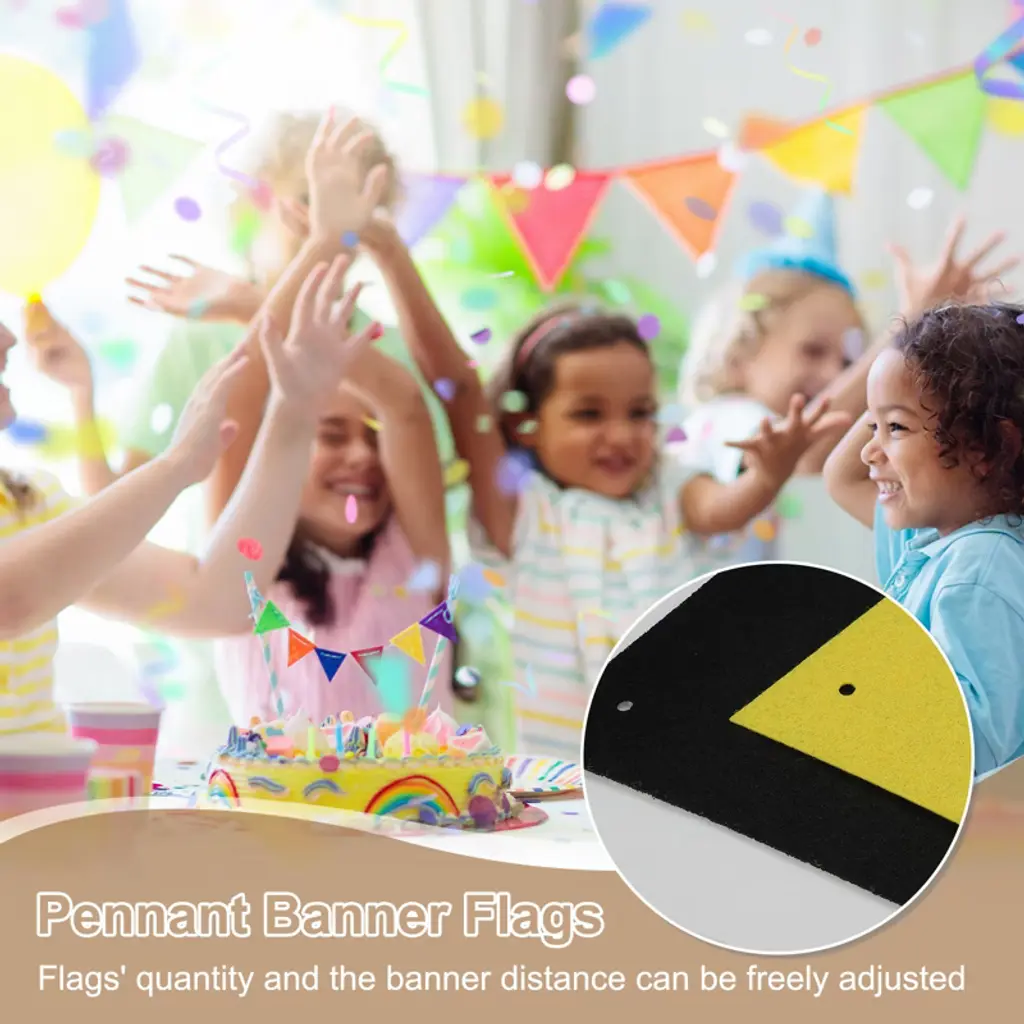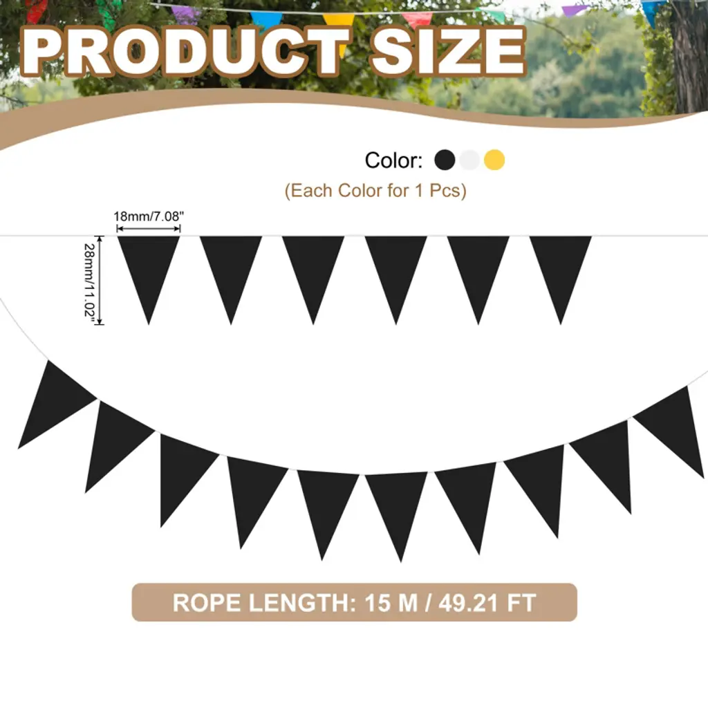 Unique Bargains 49ft Felt Fabric Triangle Bunting Garland Party Banner 1 Pcs Black/yellow