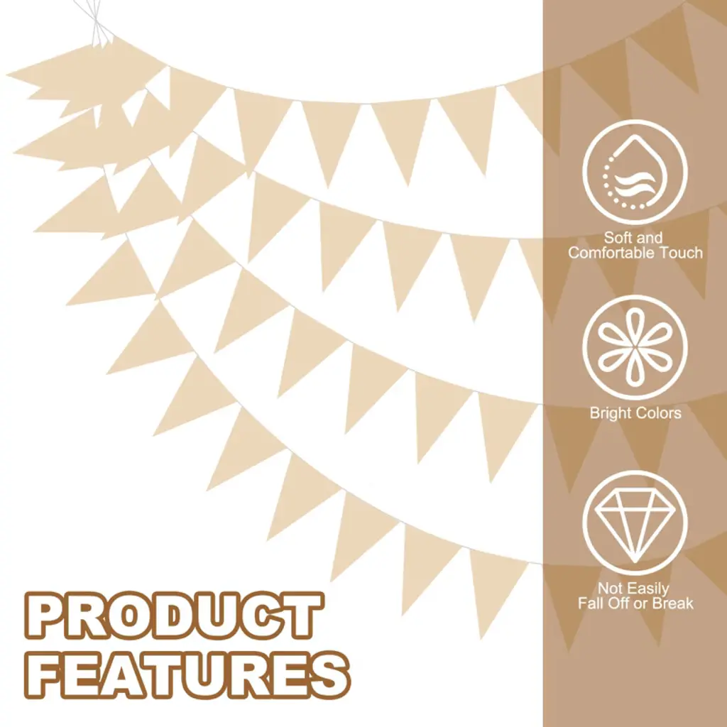 These pennant banner flags are crafted from felt fabric, providing a soft and comfortable touch. The neat pennant cutting ensures durability, making them wear-resistant and reusable. The quantity of flags and the distance between them can be easily adjusted, allowing you to hang the banner anywhere by tying a knot at the end of the string. Perfect for decorating any setting, they create an unforgettable visual experience for you and your guests. Suitable for weddings, birthdays, classrooms, living rooms, Halloween, Thanksgiving Day, carnivals, Easter parties, and Christmas decorations.