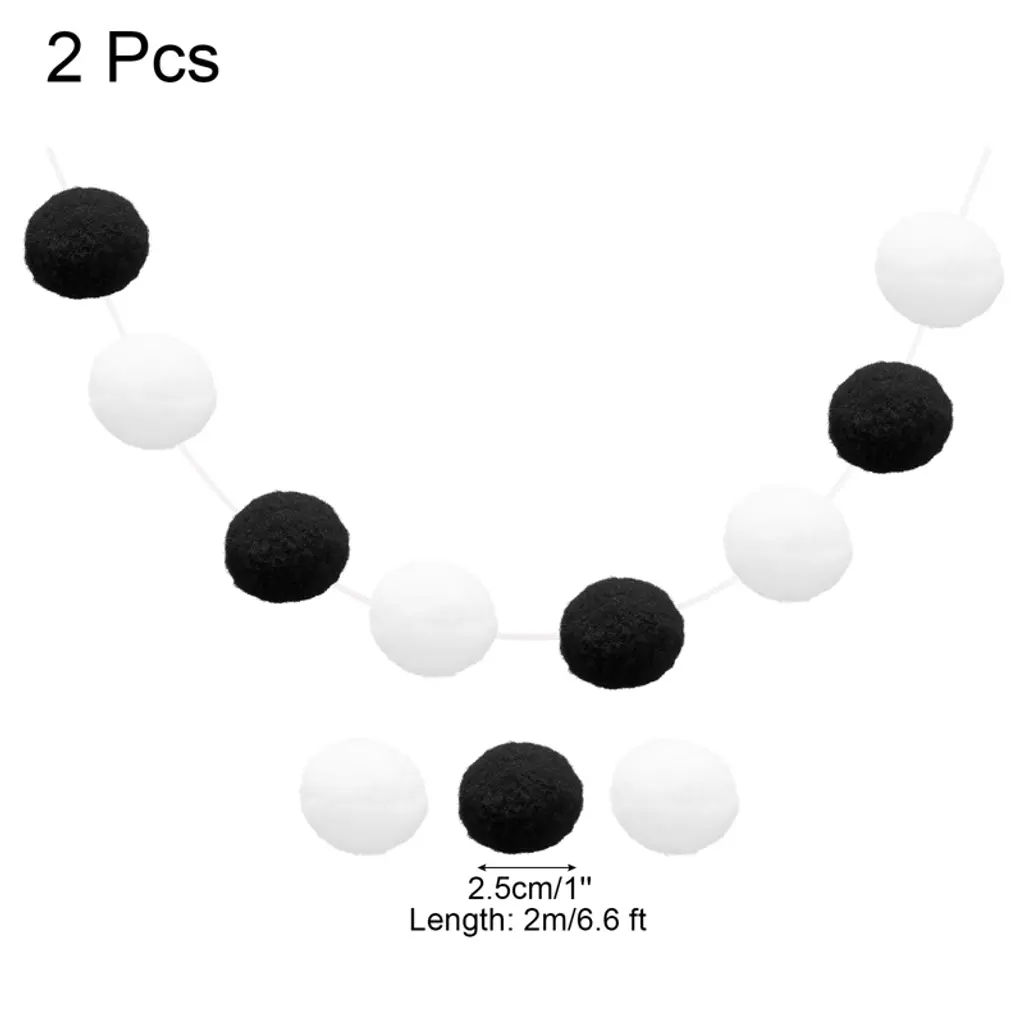 Unique Bargains Colorful Felt Ball Flexible Wear-resistant Pom Pom Garland 2 Pcs Black/white