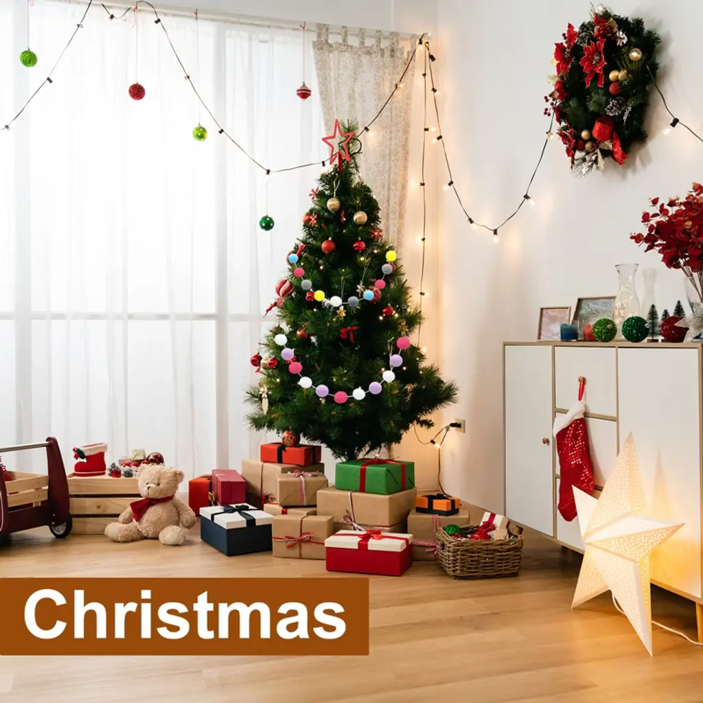 These pom garlands are crafted from durable felt material, offering flexibility and a soft texture. The polyester rope adds to its durability, making it ideal for various decoration purposes. With its round, solid-colored design, this garland easily complements most home decor styles. It's lightweight, allowing for easy hanging or draping on walls, Christmas trees, tables, and more. Perfect for adding a festive and joyful atmosphere to any occasion, be it Christmas, birthdays, or parties. Ensure secure hanging to prevent it from falling.