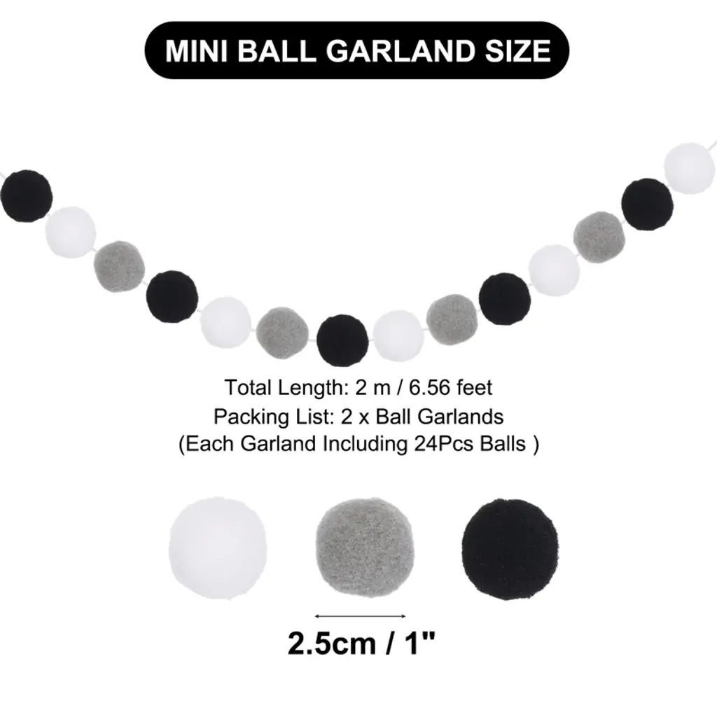 Unique Bargains Decorative Colorful Whimsical Polyester Yarn Garland 6.5 Feet 2 Pcs Black White Gray
