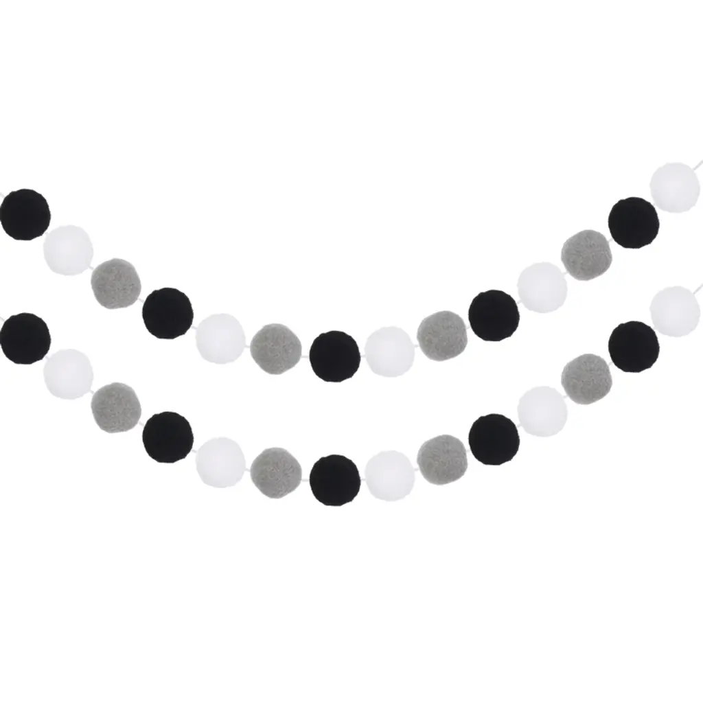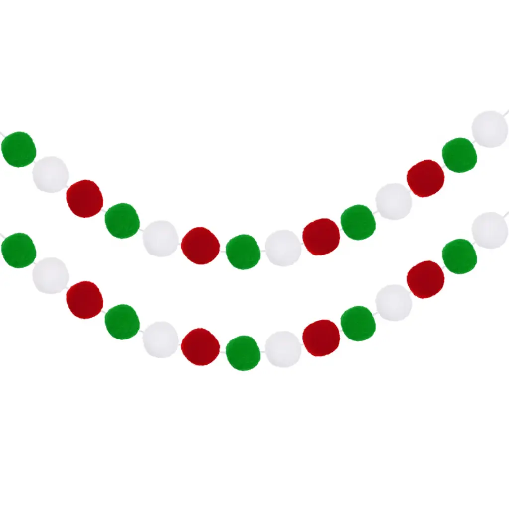 Enhance your living space or event decor with this exquisite Pom Pom Garland, adding a touch of whimsical charm and color to any setting. This versatile garland can be hung from the ceiling or wall and used as a party or home decoration. It meets your decoration needs for holidays, Halloween, Thanksgiving, Christmas, birthdays, and parties. Made of polyester yarn, the decorative ball garland is durable, soft, reusable, and vibrant, ensuring long-lasting use. Featuring an array of colorful pom poms, this garland adds a festive and playful element to your space, making it perfect for celebrations like birthdays and weddings. Easy to hang on ceilings and walls, the garlands are not knotted, allowing you to customize the distance and total length between each felt ball to suit your decoration preferences. Please note that there may be a risk of entanglement, so keep it away from children.