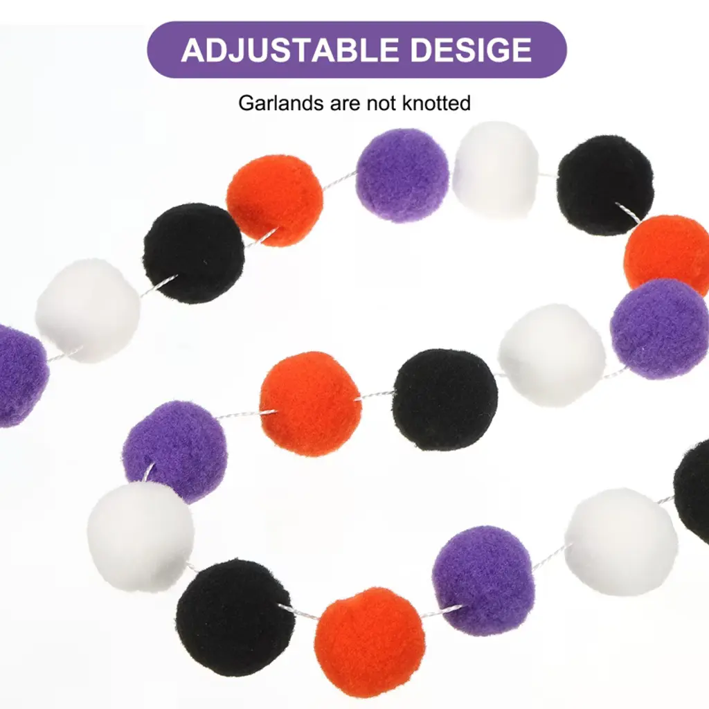 Unique Bargains Party Decorative Polyester Yarn Pom Pom Ball Garlands 6.5 Feet 2 Pcs Black White Orange Purple