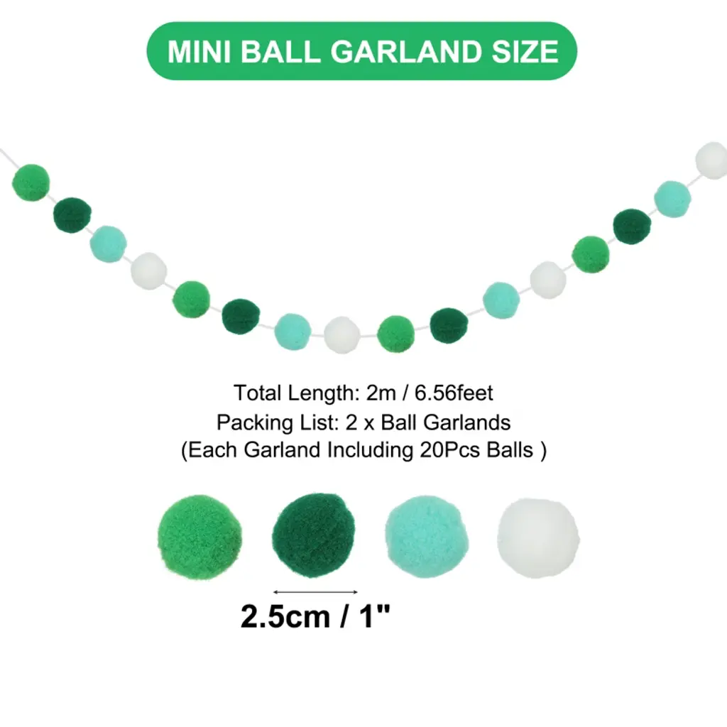 Unique Bargains Party Decorative Polyester Yarn Pom Pom Ball Garlands 6.5 Feet 2 Pcs Green White Light Green Dark Green