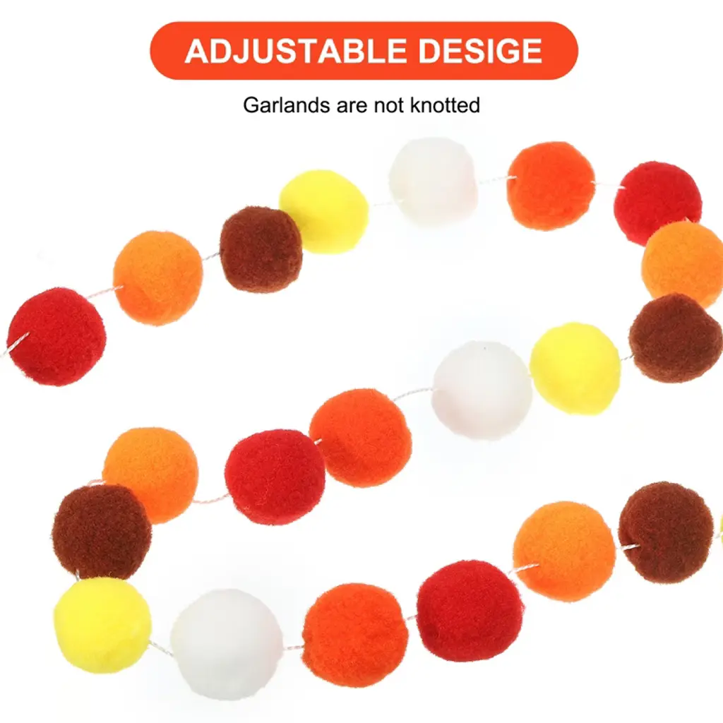 Enhance your living space or event decor with this exquisite pom pom garland, adding a touch of whimsical charm and color to any setting. This versatile garland can be hung from the ceiling or wall and used as a party or home decoration, suitable for daily, holiday, Halloween, Thanksgiving, Christmas, birthday, and party decoration needs. Made of polyester yarn, the decorative ball garland is durable, soft, reusable, and vibrant, ensuring long-lasting use. Featuring an array of colorful pom poms, this garland adds a festive and playful element to your space, making it perfect for birthdays, weddings, and more. Easy to hang on the ceiling or walls as a party or home decoration. The garlands are not knotted, allowing you to customize the distance and total length between each felt ball to suit your decoration preferences. Note: There may be a risk of entanglement; please keep away from children. Due to the difference in natural light and display resolution, the item color displayed in photos may be slightly different from the real object.