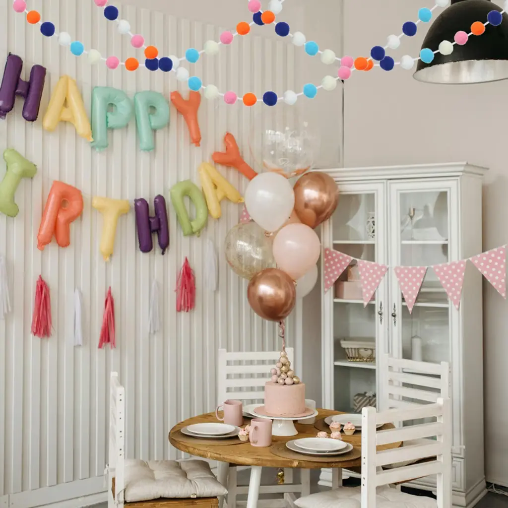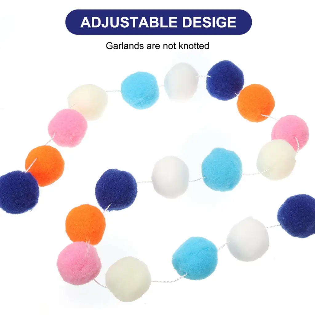 Enhance your living space or event decor with this exquisite pom pom garland, adding a touch of whimsical charm and color to any setting. This versatile garland can be hung from the ceiling or wall and used as a party or home decoration, suitable for daily, holiday, Halloween, Thanksgiving, Christmas, birthday, and party decoration needs. Made of polyester yarn, the decorative ball garland is durable, soft, reusable, and vibrant, ensuring long-lasting use. Featuring an array of colorful pom poms, this garland adds a festive and playful element to your space, making it perfect for birthdays, weddings, and more. Easy to hang on the ceiling or walls as a party or home decoration. The garlands are not knotted, allowing you to customize the distance and total length between each felt ball to suit your decoration preferences. Note: There may be a risk of entanglement; please keep away from children. Due to the difference in natural light and display resolution, the item color displayed in photos may be slightly different from the real object.