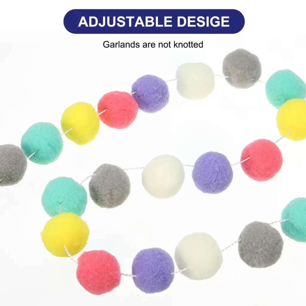 Enhance your living space or event decor with this exquisite pom pom garland, adding a touch of whimsical charm and color to any setting. This versatile garland can be hung from the ceiling or wall and used as a party or home decoration, suitable for daily, holiday, Halloween, Thanksgiving, Christmas, birthday, and party decoration needs. Made of polyester yarn, the decorative ball garland is durable, soft, reusable, and vibrant, ensuring long-lasting use. Featuring an array of colorful pom poms, this garland adds a festive and playful element to your space, making it perfect for birthdays, weddings, and more. Easy to hang on the ceiling or walls as a party or home decoration. The garlands are not knotted, allowing you to customize the distance and total length between each felt ball to suit your decoration preferences. Note: There may be a risk of entanglement; please keep away from children. Due to the difference in natural light and display resolution, the item color displayed in photos may be slightly different from the real object.