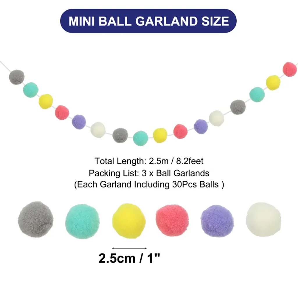 Unique Bargains Party Decorative Polyester Yarn Pom Pom Ball Garlands 8.2 Feet 3 Pcs Fancy Colors