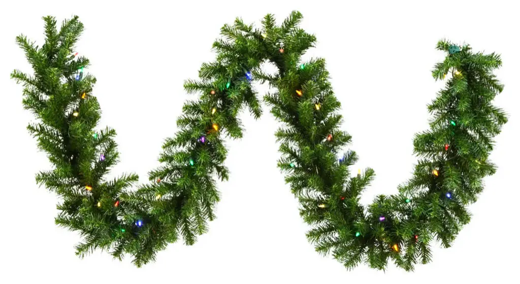 Vickerman 9'' x 18" Cashmere Pine Artificial Christmas Garland with 260 PE/PVC Tips and 150 Italian 7-Color Multi-colored LED Lights, Runs on 120V AC. This garland comes prelit with Warm White dura-lit LED Mini lights that are hand wrapped to minimize the appearance of wire. Vickerman''s dura-lit technology guarantees that if one light goes out, the rest stay lit. This cashmere tip features a mixed blend of realistic PE, and traditional PVC needles to create a natural yet full look. It features a heavy duty wire frame to ensure it stays in the shape that you desire.