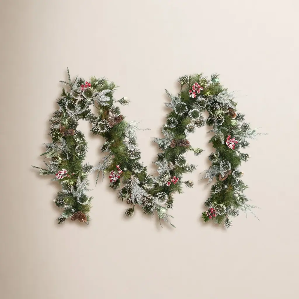Vickerman 9'' x 16" Flocked Alaskan Artificial Christmas Garland, Warm White Dura-lit LED Mini Lights Flocked features - this garland comes with a light flocking of a fresh snowfall. Add a welcome feeling to any space in your home with the addition of this decorative faux garland.