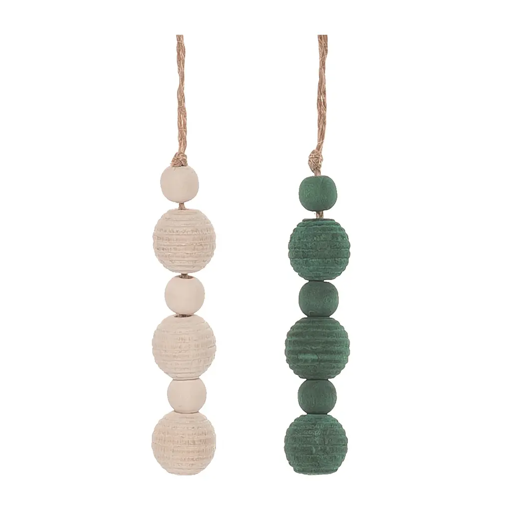 Get ready to decorate your home this holiday season with a set of Wood Beaded String Garlands! Featuring neutral white and beige tones and modern yet traditional beaded string design, this set is sure to fit right in with your holiday decor. The quality wood compsosition is sure to endure for seasons to come. Adorn your Christmas tree or staircase banister with this lovely accent, or weave the pieces into a pine wreath or pine garland for added holiday cheer.