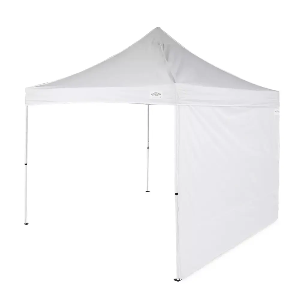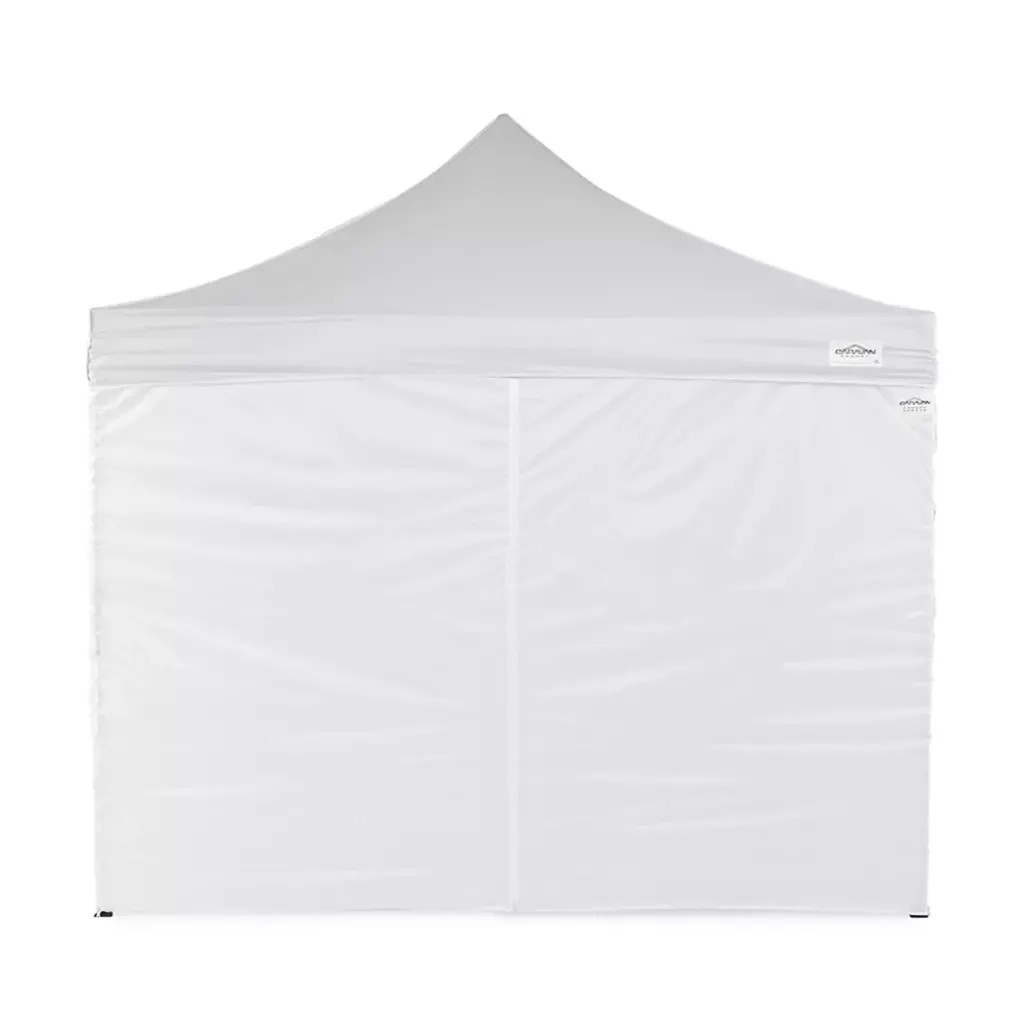 Whether you're hosting a backyard barbecue, outdoor wedding, or other event, give yourself and your guests a little more privacy and protection from the weather with the Caravan Canopy 10 x 10 Foot Tent Sidewalls. These canopy tent sidewalls are perfect for your 10 x 10 foot commercial grade canopy tent systems, including Titan Shade, Display Shade, Classic, Monster, Alumax and AlumaShade canopies. This set features 4 tough polytaffetta side walls that block sun, wind, and rain. 3 walls are solid and 1 features a zippered door for easy access. These sides walls are white and come with high grade hooks and loops for attachment to your tent frame (not included). Note: Only sidewalls are included. Pictured roof and canopy frame are NOT included.