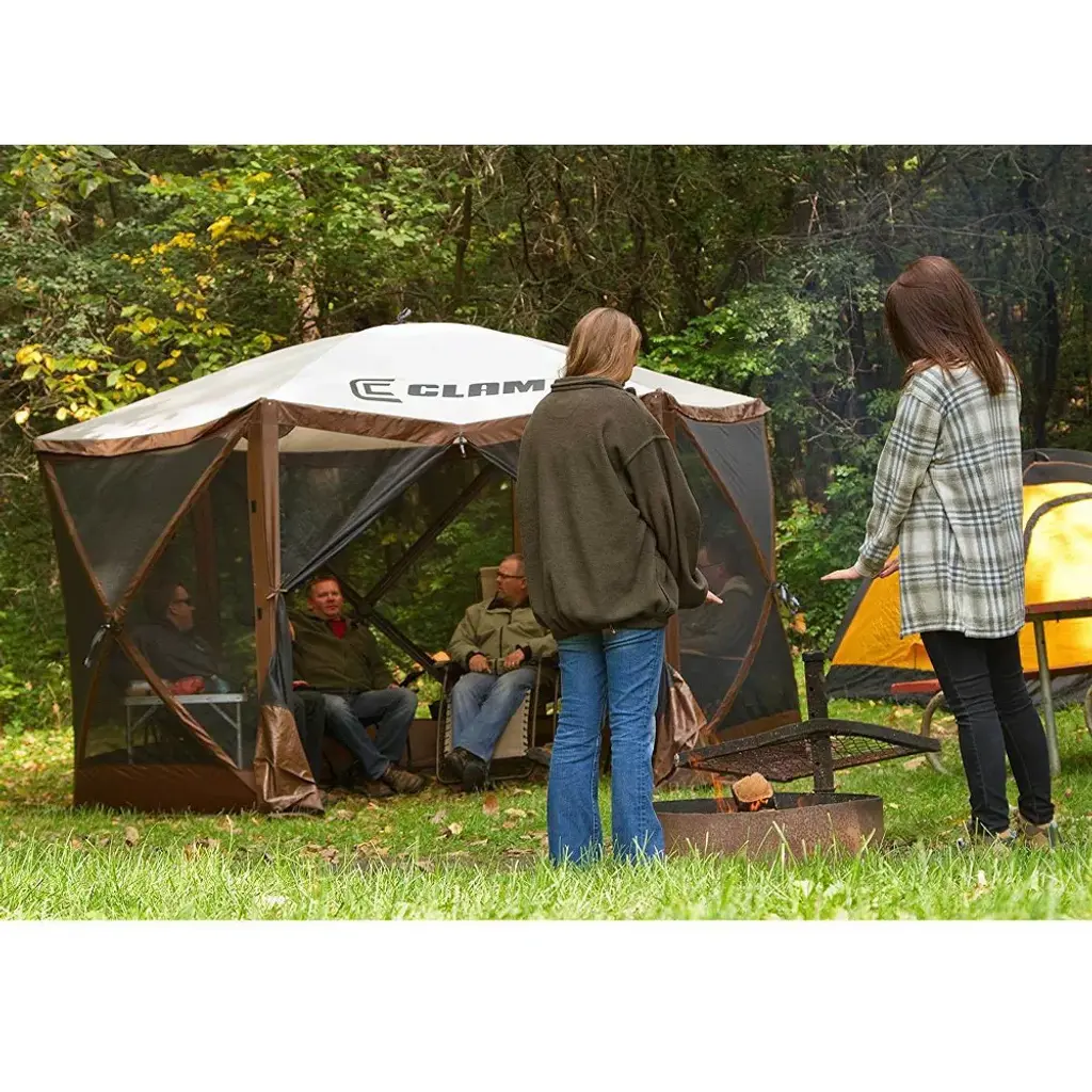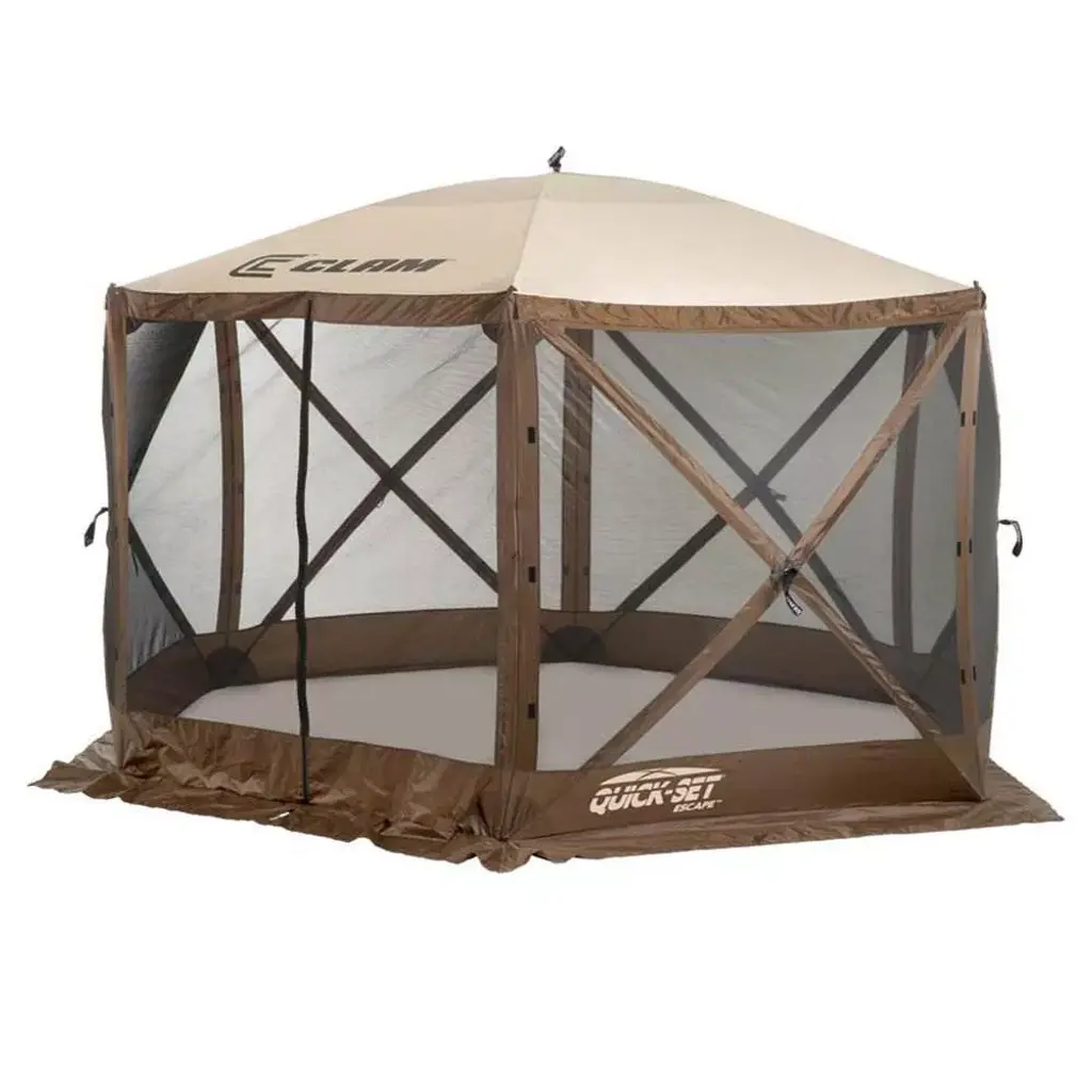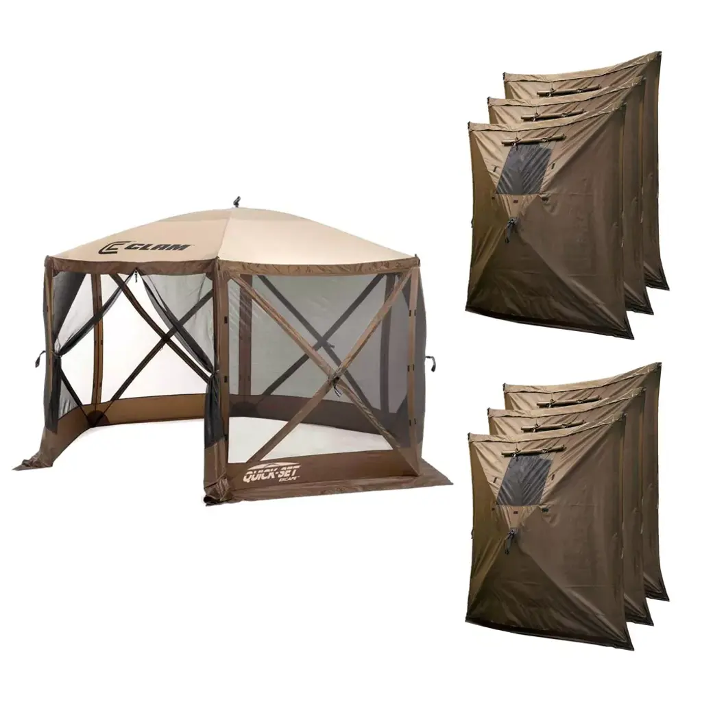 Clam Quick-set Escape 11.5 X 11.5 Ft Portable Pop-up Outdoor Camping Screen Tent 6-sided Canopy Shelter W/ Carry Bag & 6 Sun And Wind Panels, Brown