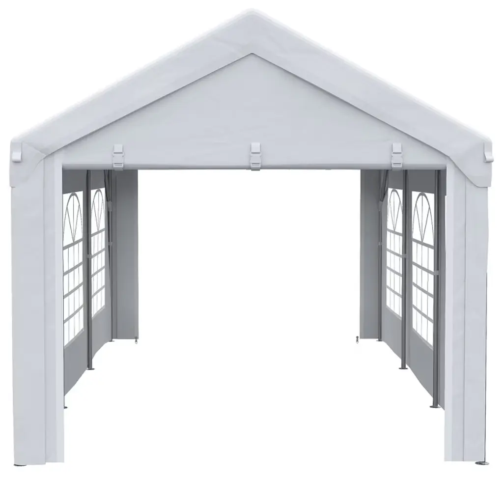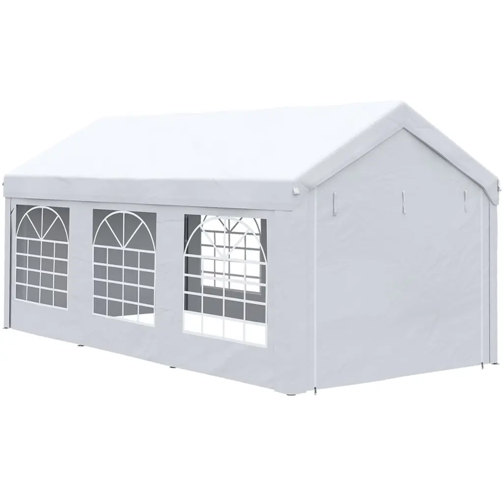 Outsunny's 10' x 20' carport and party tent can protect your project car and transform any outdoor area into a unique event space. Excellent for wedding receptions, graduation parties, or extra-large barbeques, it offers six stylish cathedral-esque windows. Excellent for small-to-medium cars, boats, furniture, and tools, it stops sun damage and sunburns alike. Made of a galvanized steel frame selected to withstand warping, Outsunny's canopy tent provides portable protection.