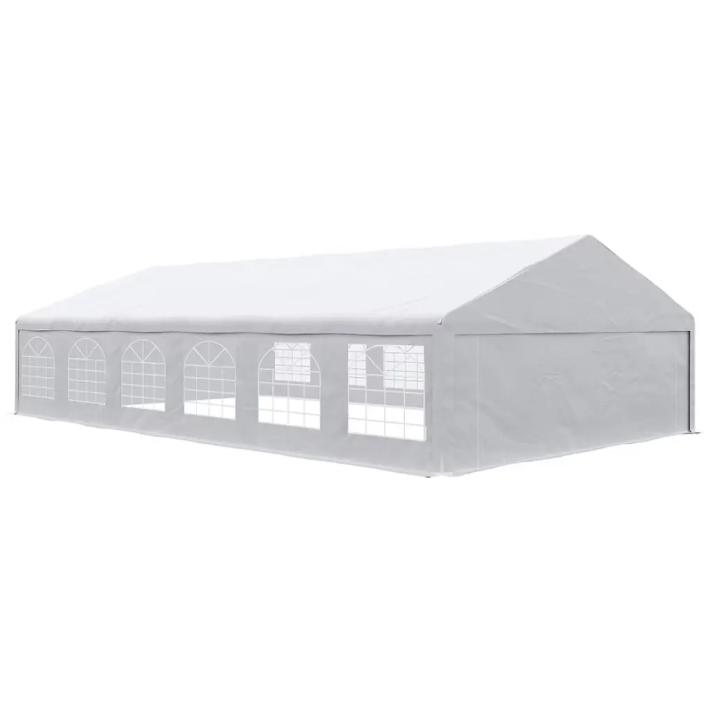 Outsunny's 23' x 39' carport and party tent can protect your project car and transform any outdoor area into a unique event space. Excellent for wedding receptions, graduation parties, or extra-large barbeques, it offers twelve stylish cathedral-esque windows. Excellent for small-to-medium cars, boats, furniture, and tools, it stops sun damage and sunburns alike. Made of a galvanized steel frame selected to withstand warping, Outsunny's canopy tent provides portable protection.