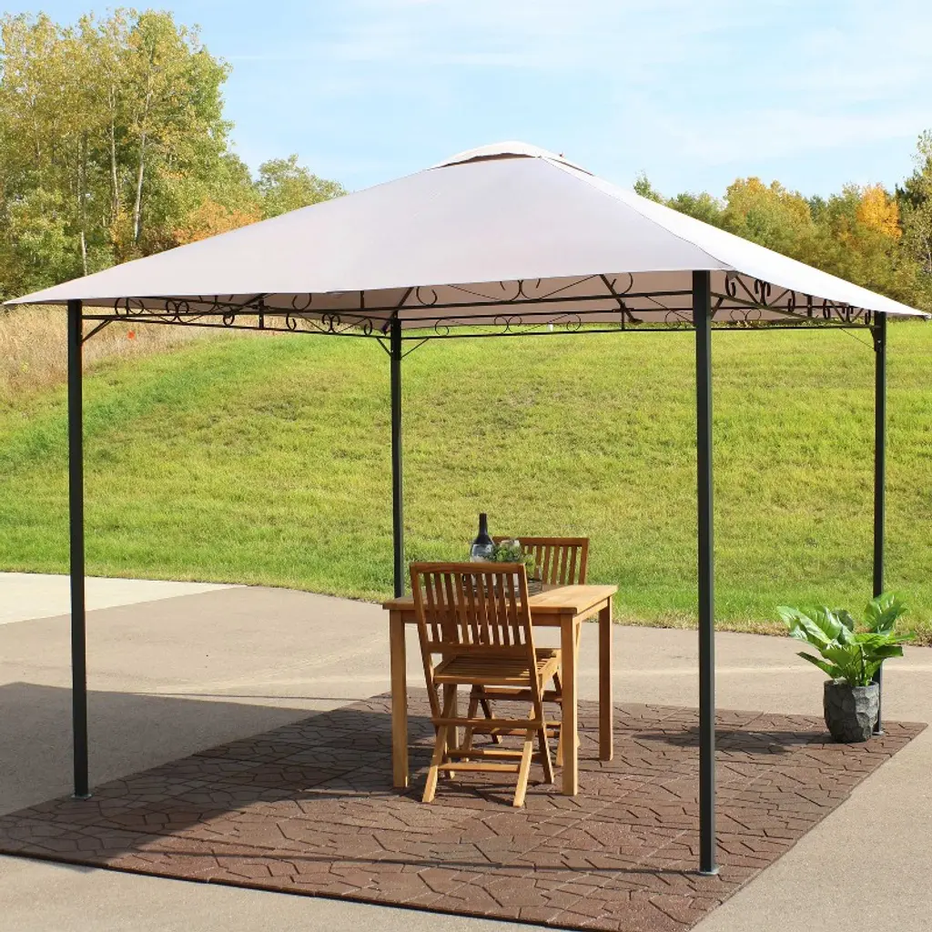 Enjoy relaxing outdoors with this 10 ft x 10 ft powder-coated steel gazebo with a weather-resistant, polyester top. This gazebo is especially useful to emphasize style and elegance for any large gatherings, events, and reunions. This open gazebo is great for the patio or backyard. It provides comfortable shelter from sun and rain while allowing guests to remain mobile throughout the day. This gazebo has a durable 0.88 mm thick steel frame and a tough polyester canopy roof for use season after season. Plus, it features a stylish design to complement any outdoor space. The polyester fabric allows airflow throughout the gazebo. The sturdy construction and elegant design are sure to impress all guests while keeping them safe from the elements. For the next outdoor party, picnic, camping trip, or barbecue gathering, grab this gazebo and enjoy time with friends and family.• SPACIOUS SHELTER FOR GATHERINGS: This gazebo measures 120" W x 120" D x 106.5" H and weighs 51.2 lbs. The frame measures 102" W x 102" D with a 76.5" head clearance (81" H frame peak). The roof measures 120" W x 120" D x 28" H. Each leg measures 1.5" square, and each foot is 3.25" in diameter with two holes for anchoring. The canopy provides up to 100 square feet of shade and is great for outdoor parties, barbecues, and picnics.• CONSTRUCTED FROM QUALITY MATERIALS: This gazebo is made with a durable 0.8mm thick steel tube frame and a tough, polyacrylate-coated 160g polyester roof to help resist fading. The roof is vented to allow heat to escape and keep the area beneath the shade comfortable.• READY FOR USE: This outdoor gazebo comes with everything needed to enjoy some shade, including 4 legs, 8 roof beams, 4 long roof bars, 4 short roof bars, 1 hardware set, 8 brackets, 8 tent stake pegs, 1 peak hub, and 1 spanner. Two people are required for assembly.• STYLISH DESIGN: This gazebo's open design allows for outdoor enjoyment and a refreshing breeze while getting covering from the sun and rain.• WORRY-FREE PURCHASING: Sunnydaze Decor backs its products with a 1-year manufacturer's warranty.