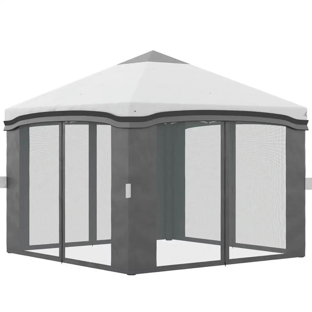 Tangkula 10'x10'outdoor Canopy Gazebo Art Steel Frame 2-tiers Party Patio Large Canopy Gazebo W/netting&side Walls