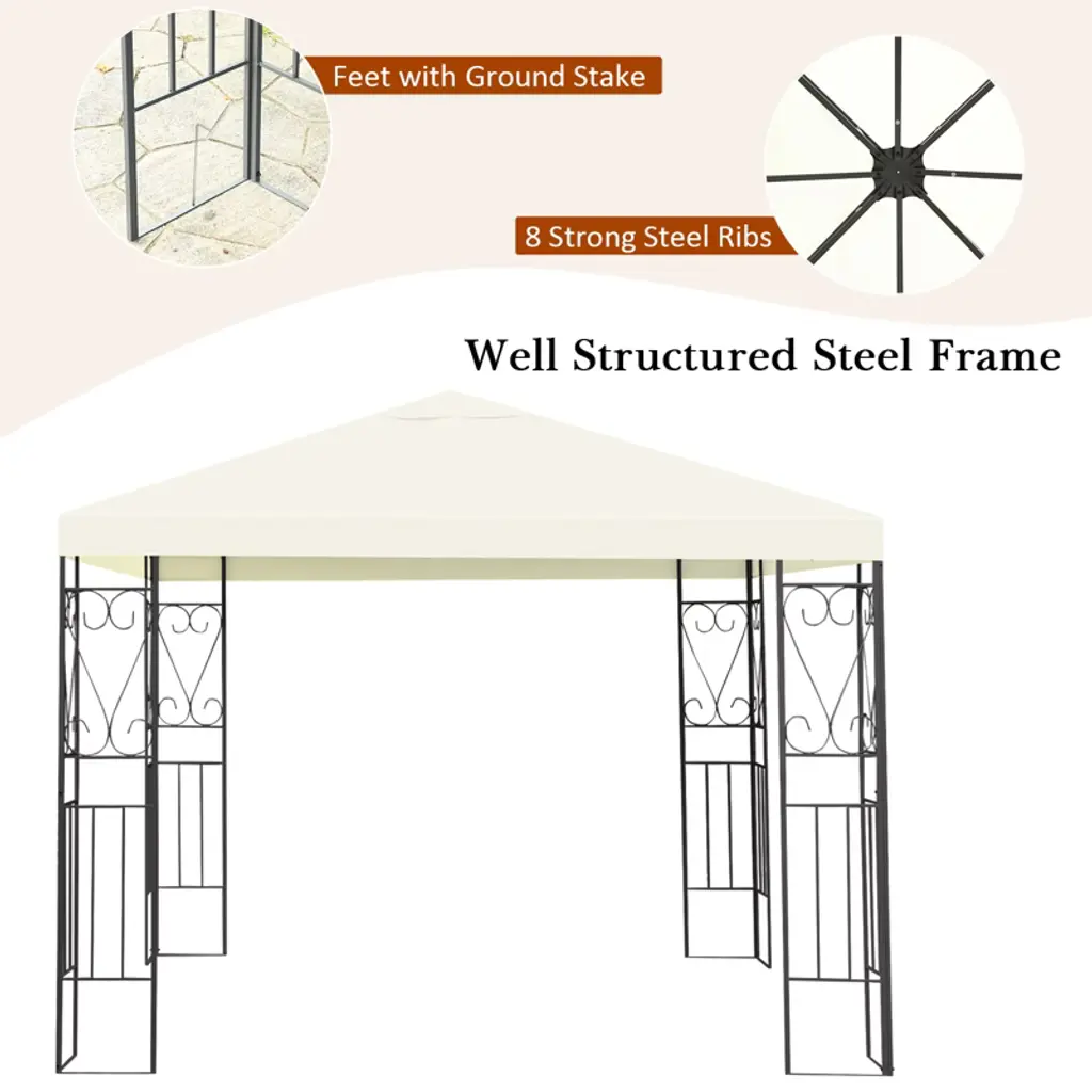 Tangkula 10'x10'outdoor Canopy Gazebo Art Steel Frame Party Patio Large Canopy Gazebo
