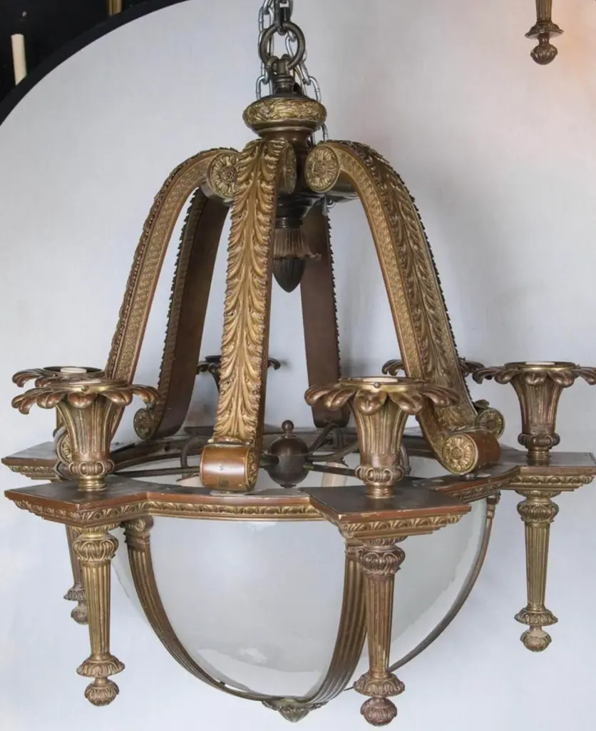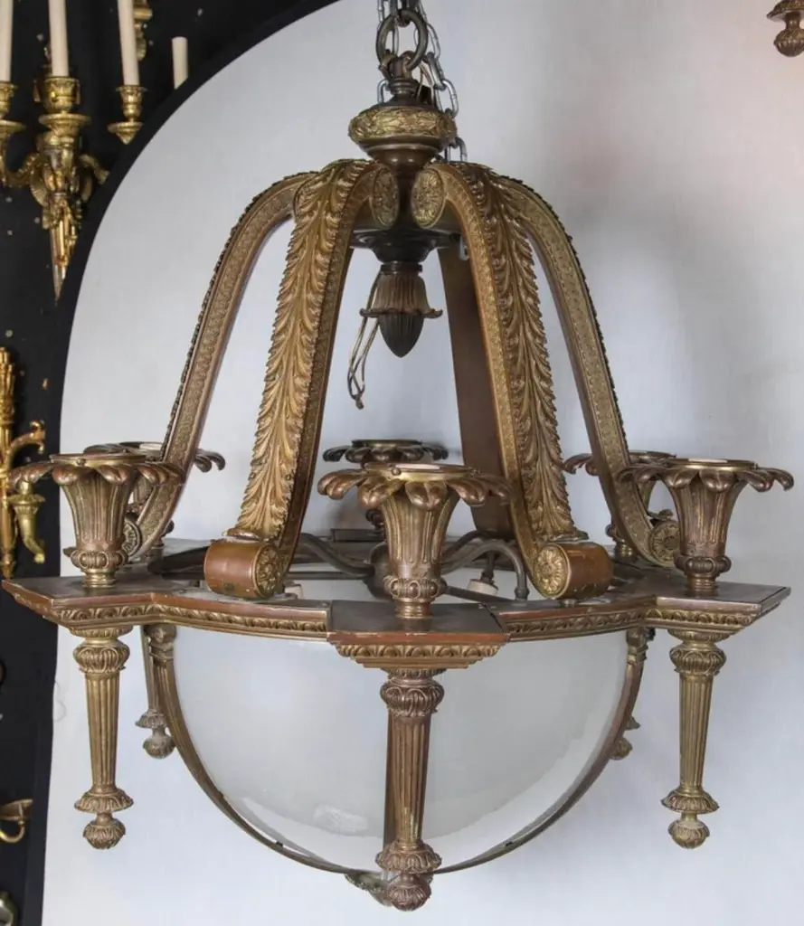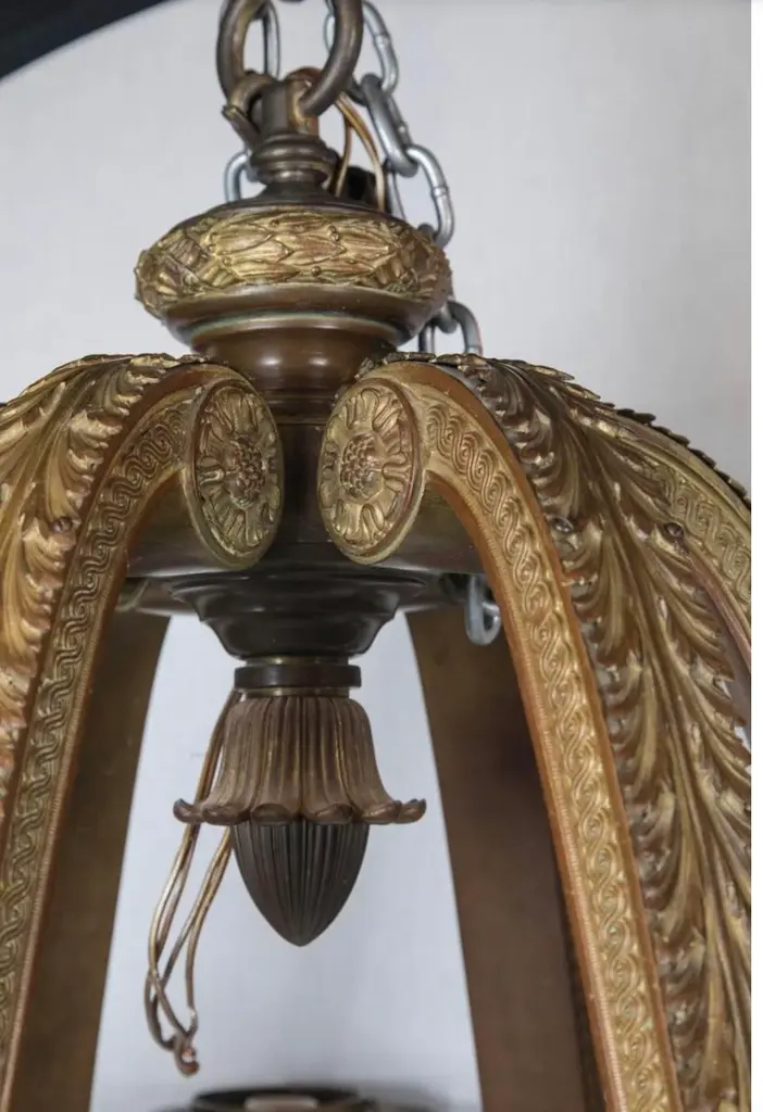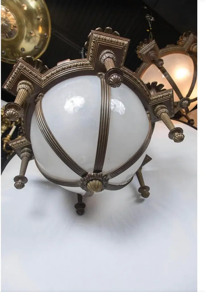 A of circa 1900's Caldwell bronze Dome shape lights fixtures with interior lights