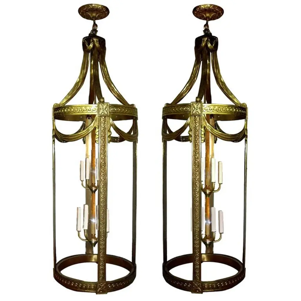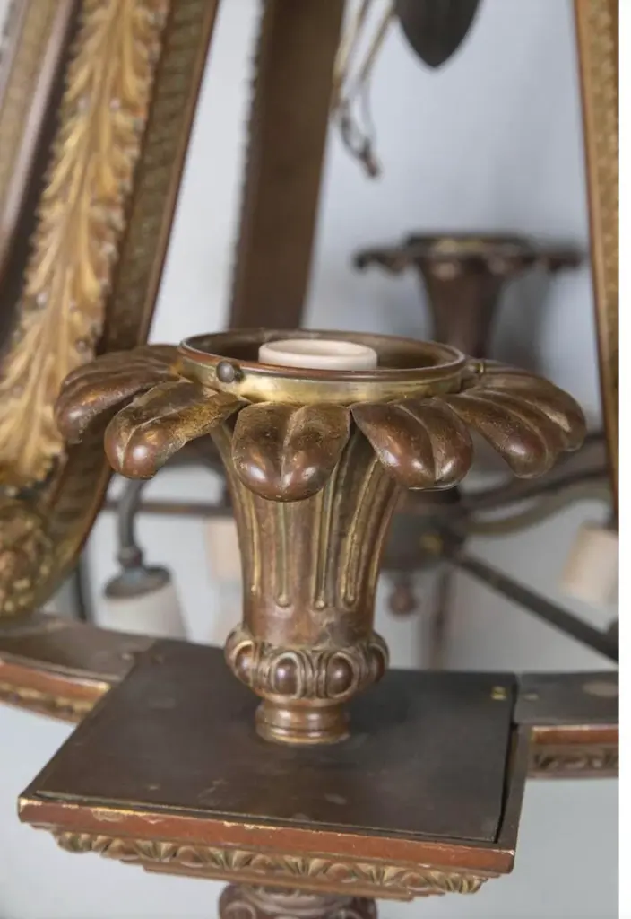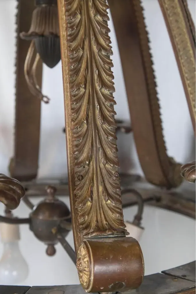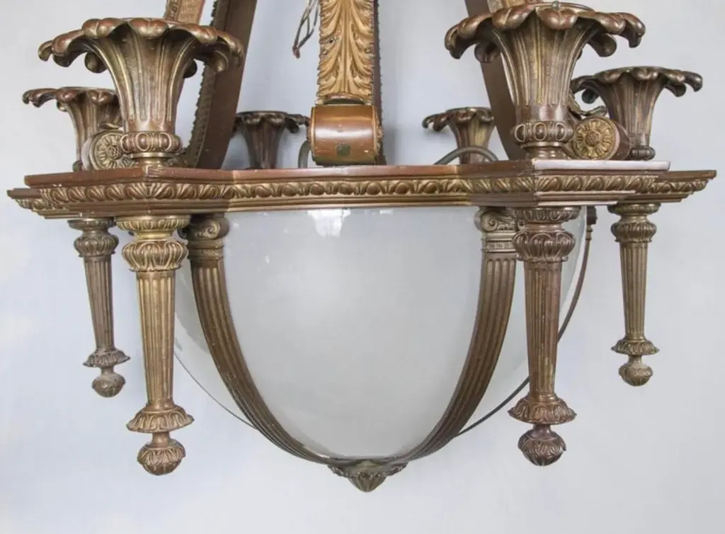 A of circa 1900's Caldwell bronze Dome shape lights fixtures with interior lights