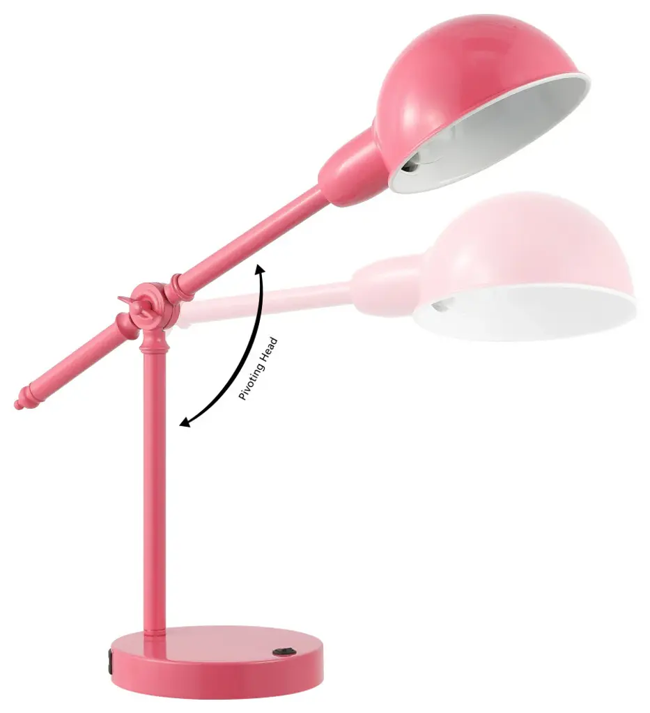 Upgrade your living room, home office or bedroom with our vintage-inspired task lamp. It has an adjustable shade and Edison-style LED bulb for warm, bright light; a built-in USB outlet lets you recharge mobile devices. This classic desk or bedside lamp adds a mid-century touch to any room.Features:• Classic pink finish with white interior on the shade is perfect for a traditional farmhouse or modern interior• Quality touches include a metal shade, USB charging port and silk-wrapped cord• This lamp''s retro style and handy features make it ideal for vacation homes and hospitality projects• Eco-friendly 4W LED bulb included• Takes 1 bulb and compatible with TYPE "A" 40W or CFL 13W or LED 9W• Color: Pink• Body Material: Metal• Includes: One (1) lamp• Assembly RequiredDimensions:• Lamp: 20.25 inches high x 5.88 inches wide x 21 inches deepAbout us:You see a lamp.We see a decorative work of art.A perfectly curved shade casts a dramatic shadow on a floor. Compatible with LED lightbulbs: as easy on the environment as they are on the eyes. The JONATHAN Y Lighting collection considers every detail from impeccably sourced materials to designer styling. And our prices are so attractive, we''ve transformed a functional necessity into a fashion accessory.JONATHAN Y Lighting - a fashion revolution in home decor.