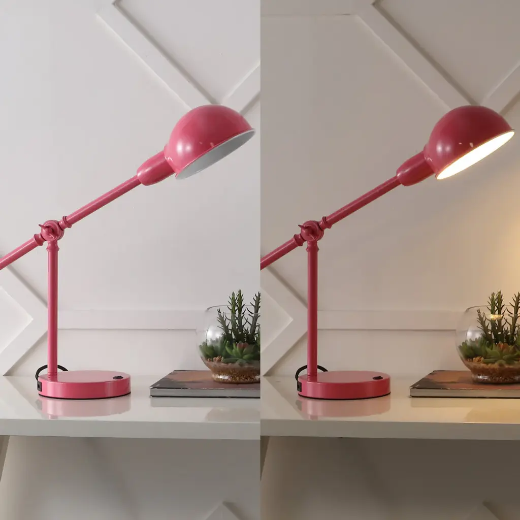 20.25" Iron Adjustable Dome Shade Led Task Lamp With Usb Charging Port, Pink