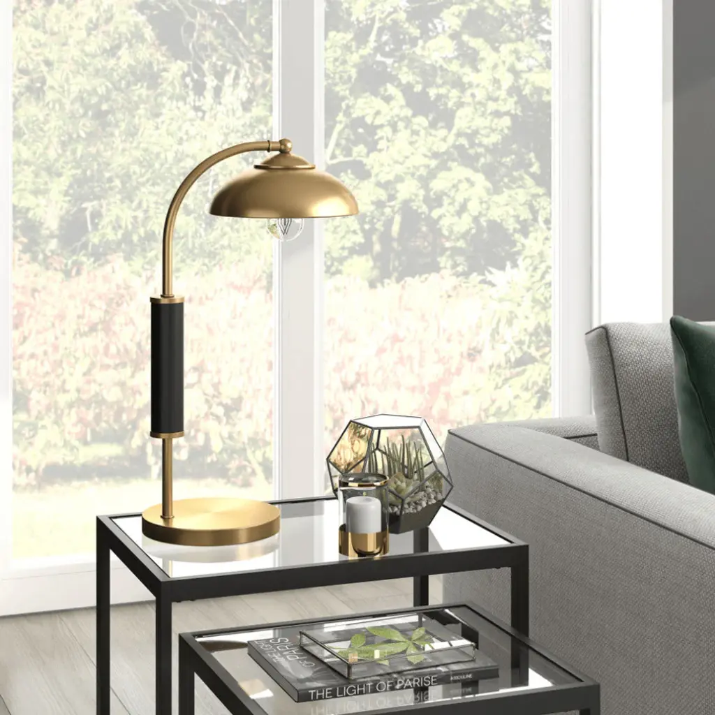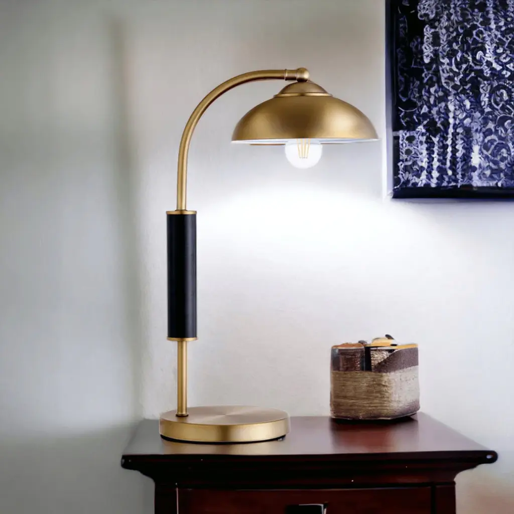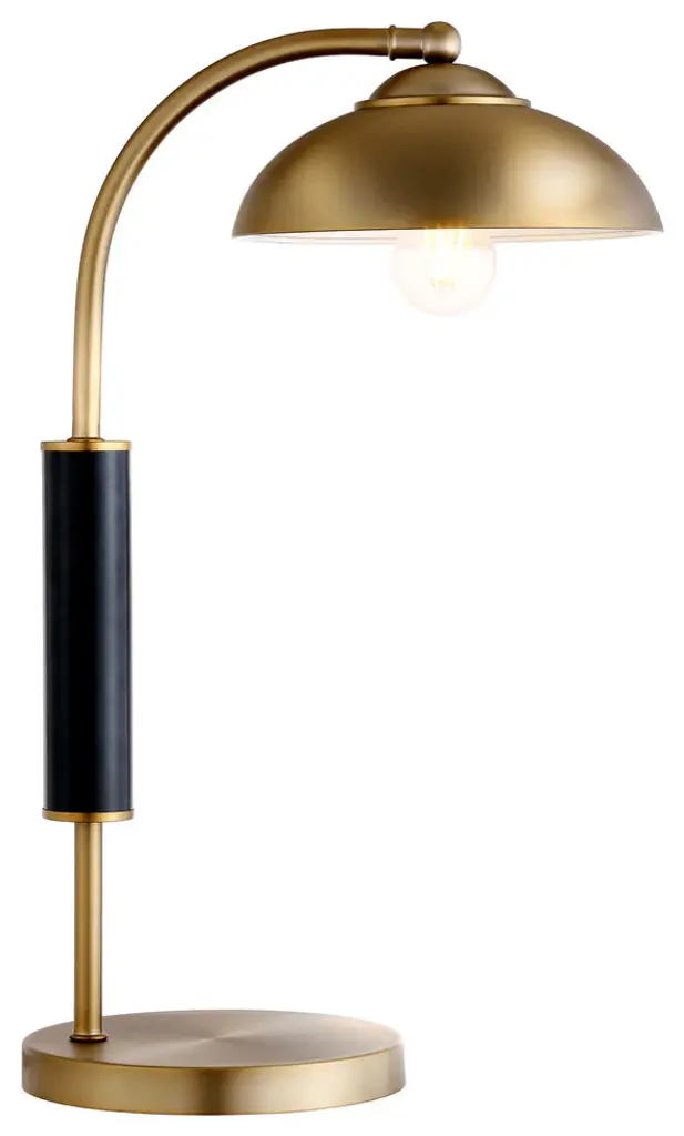 Truly a mix of design and functionality that doesn''t compromise on style, this 24-inch gold and black metal desk table lamp with gold dome shade will be a great addition to your space. A gorgeous gold and black metal base brings just the right amount of pizzazz to this fabulous lamp. Includes a gold metal, dome shaped shade, making this a fashionable piece that will complement most any interior. This desk lamp provides ''task lighting'' that will illuminate your working area for reading or writing. The light that this lamp throws is soft and warm to elevate the look of most any space in your home. It is perfect for virtually any decor. 24-inch H x 15-inch W x 9-inch D