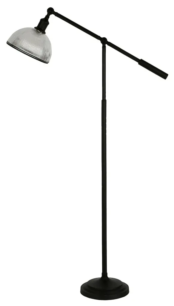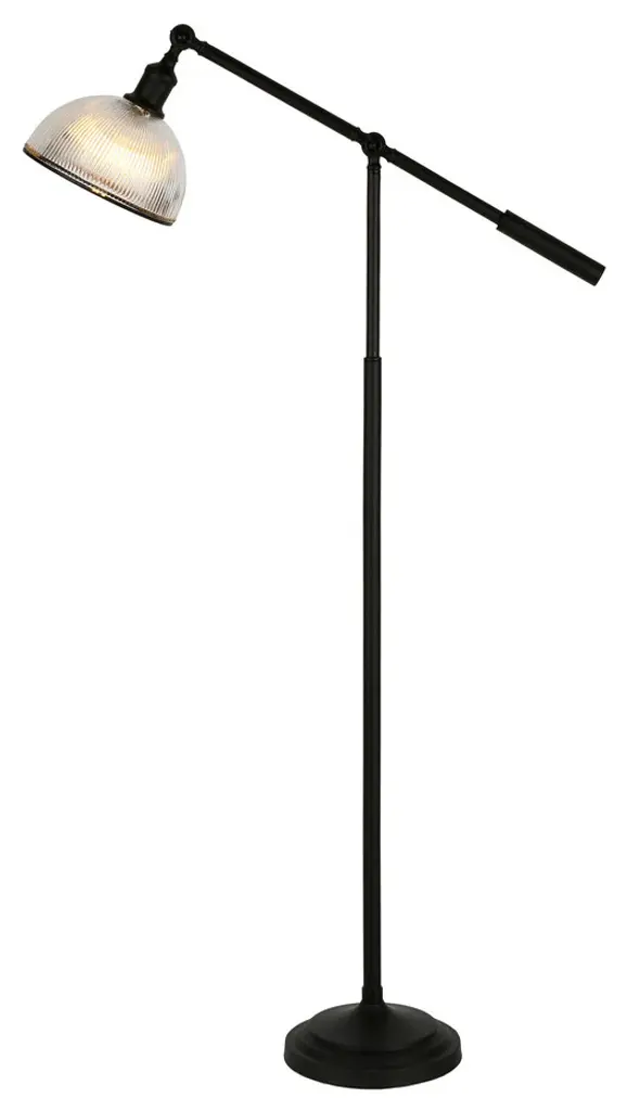 Truly a mix of design and functionality that doesn''t compromise on style, this 58" black swing arm floor lamp with clear transparent glass dome shade will be a great addition to your space. A gorgeous black metal base bring just the right amount of pizzazz to this fabulous lamp. The coloration of the black lamp base creates a fashionable marriage with the the clear glass dome shaped shade. A stationary base marries with a flexible swing arm that allows you to extend and move the light to where you need it. High quality design makes this a great lamp for not only lighting, but accenting a room with style. Bring some lite and good vibes into your space with this updated and stylishly designed lamp. 58" H x 32" W x 11" D