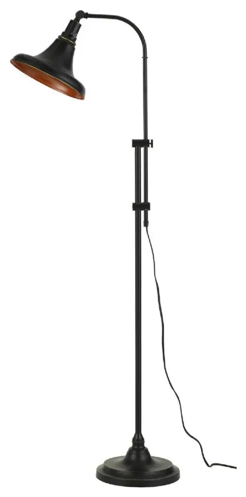 With this 58" bronze adjustable traditional shaped floor lamp with bronze dome shade you bring design along with some warm ambient lighting to your space. The base of this lamp is made of metal finished in a bronze tone. The bronze base coloring infuses a warm and rich tone to your space. The coloration of the bronze lamp base creates a fashionable marriage with the the bronze metal dome shaped shade. Classically styled, this traditional lamp features a straight pole that extends upwards from a single base. The light that this lamp throws is soft and warm to elevate the look of most any space in your home. It is perfect for virtually any decor. 58" H x 21" W x 10" D