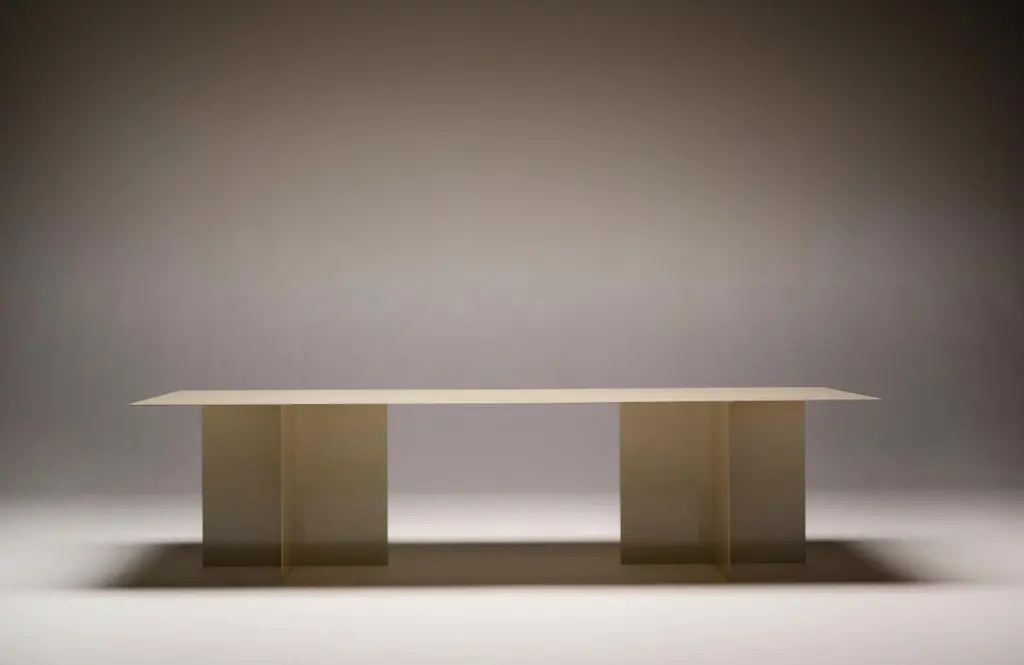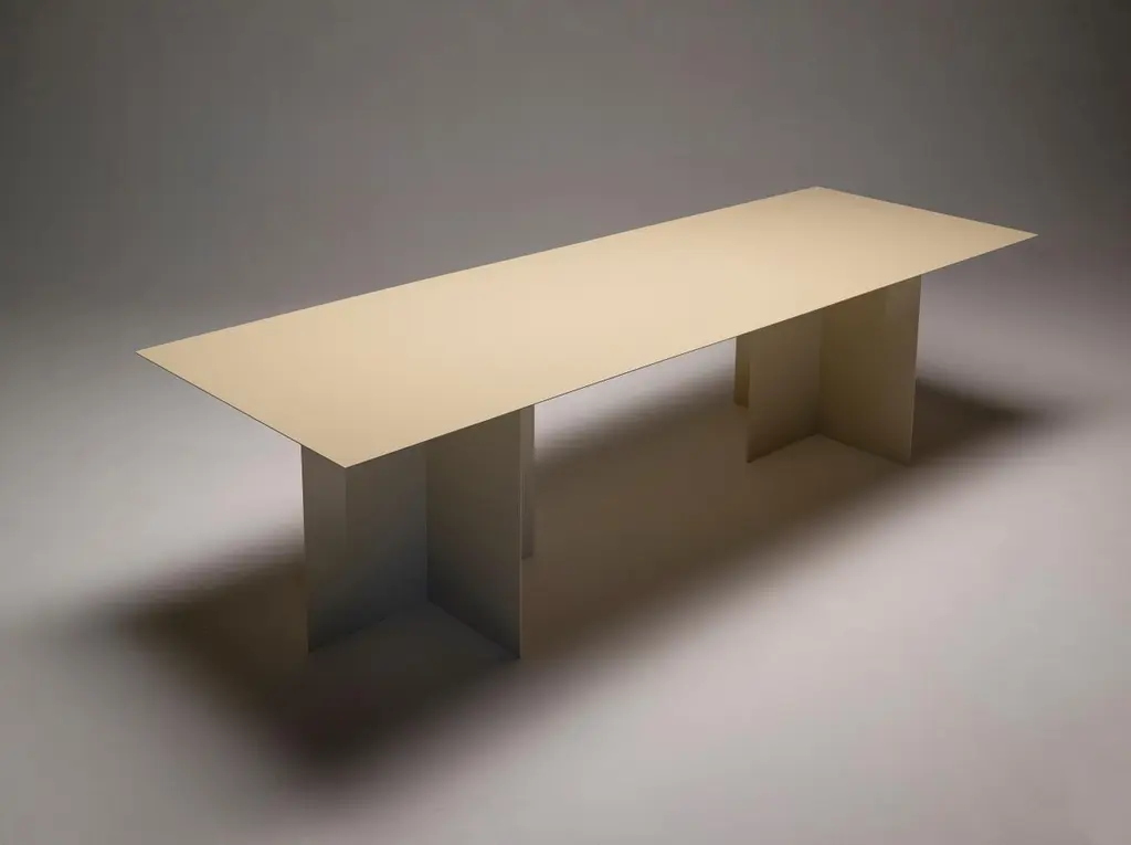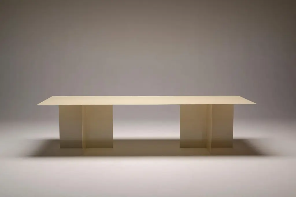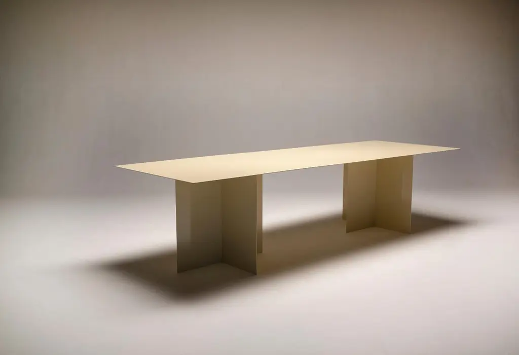 Across Rectangular Dining Table by Secondome EdizioniDesigner: Claudia Pignatale.Dimensions: D 100 x W 300 x H 73 cm.Materials: Iron.Collection / Production: Secondome. This piece can be customized. Available finishes: any RAL color. Also available in an oval shape. Please contact us. An iron origami that seems light, a game of cross-shaped forms and surfaces of any geometric shape define this collection of tables, characterized by a feature common to all my protects: colour.The cross-shaped base fits any shape of top, all produced with a 3mm metal plate of customizable colour, a project in the making, a construction game in which the end user is free to create their own custom table, a project within a project.THE GALLERYSecondome is a Design Gallery focused on contemporary designers and innovative projects worldwide.Founded by Claudia Pignatale in 2006, Secondome produces its own collection of Furniture and objects working to launch experimental designers, artisans and master craftsmen. Its mission lies in highlighting both the high quality manufacture of the Made in Italy brand and the originality of products, emphasizing the tradition of Italian craftsmanship whilst breaking the mold of lifeless objets d’art.The artisanal nature of Secondome’s production makes each piece individual and highly personalized.