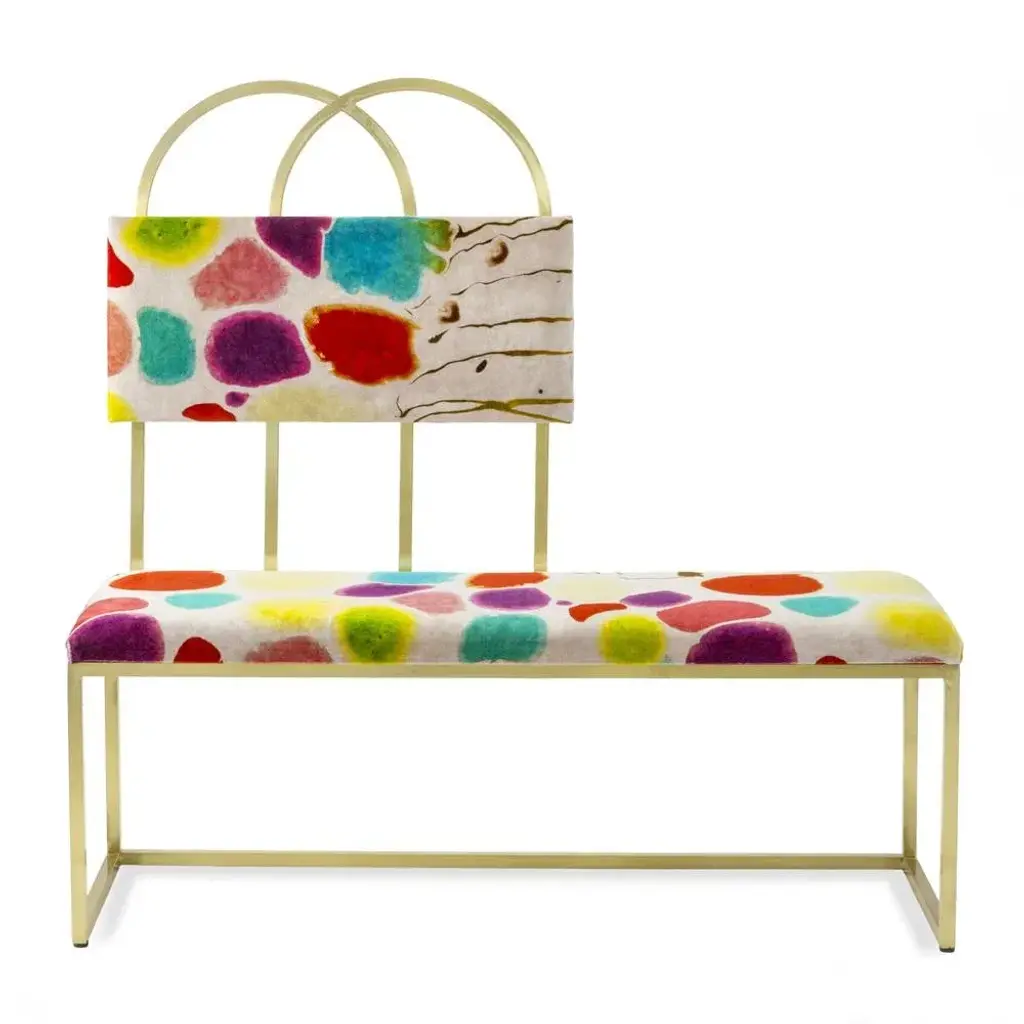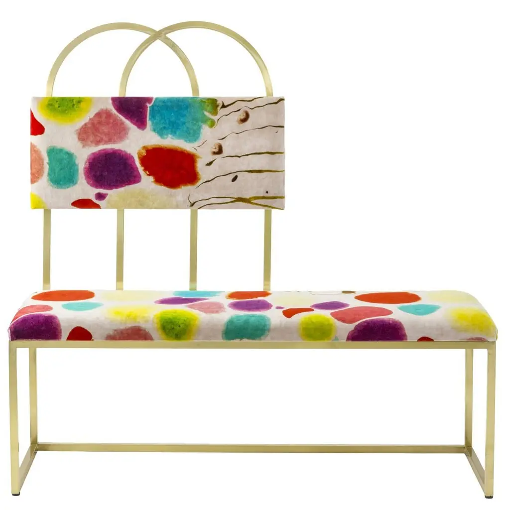 The project’s name speaks to the feeling of anticipation and excitement that precedes an encounter and it’s deeply linked to the purpose of the objects: benches, stools, a mirror, a vanity table and a room divider. The collaboration started as a game. The artist, Coralla Maiuri, inspired by the pictures of her porcelain pieces, designs a collection of bold colored velvet cloth. Her will to shape them into something equally bold yet refined, brings her, trough Claudia Pignatale, together with the designer Giorgia Zanellato. Awaiting is a feminine and sensual collection that mixes a taste of classic and contemporary in pieces of furniture realized in golden brass and original printed velvet.