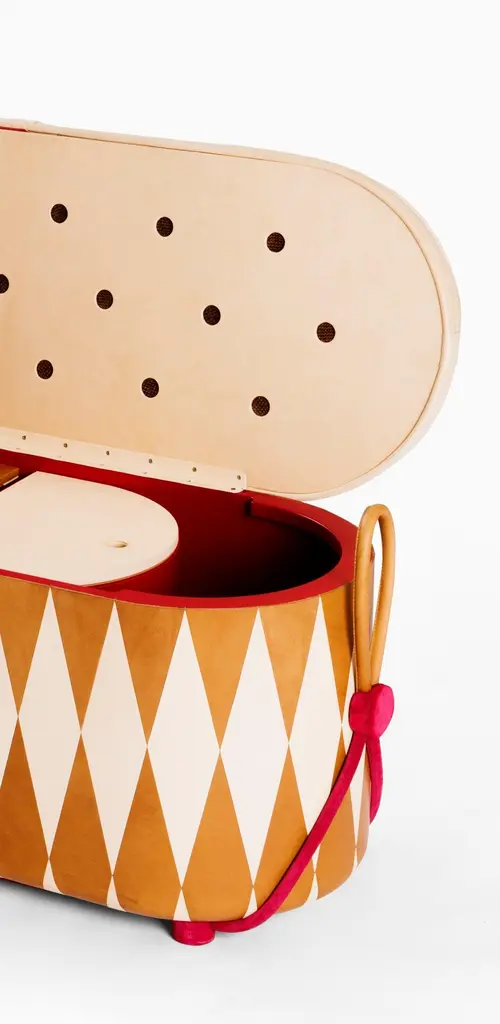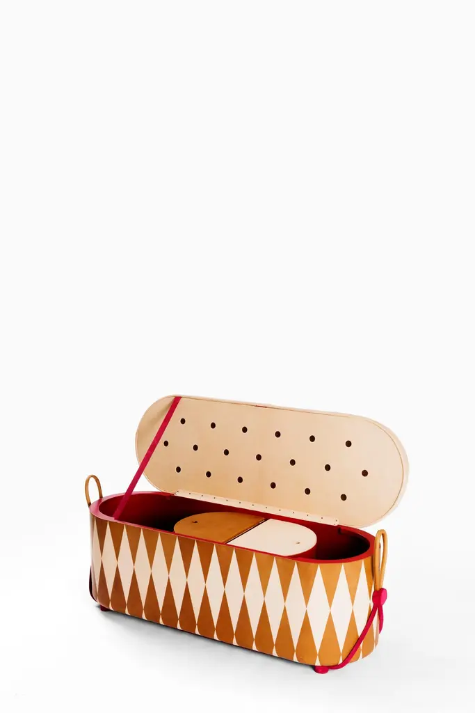 Chest of Wonders Bench With Storage by Secondome EdizioniLimited Edition Of 9 pieces + 3 A.P.Designer: Matteo Cibic.Dimensions: D 40 x W 120 x H 40 cm.Materials: Leather and marble.Collection / Production: Secondome. This piece can be customized. Available colors: any kind of leather color. Please contact us. For Operæ – Independent design festival eighth edition, Secondome under the artistic direction of Claudia Pignatale, presents “WUNDERBRUST” a project by Matteo Cibic, crafted by DOC. As described by the fair curator, Alice Stori Lichtenstein “While nosing and poking around the atelier of DOC, Matteo Cibic was struck by the skill required for making cushions and craft with which boxes and containers were leather-bound. He started to play with the idea of a trunk, seeing it as a timeless object which is passed along in a family. With an eye to the luxurious travelling trunks of the past, and one to the humbler and traditional wooden chest, Cibic developed his own very personal interpretation. The result is a seating bench, that by lifting the lid can be used as a storage space. Using the most natural leather as a canvas, he applied color and a pattern with his signature humour.” The chest is entirely handmade, crafted in natural leather and chamois, thus subjected to changes through time.THE GALLERYSecondome is a Design Gallery focused on contemporary designers and innovative projects worldwide.Founded by Claudia Pignatale in 2006, Secondome produces its own collection of Furniture and objects working to launch experimental designers, artisans and master craftsmen. Its mission lies in highlighting both the high quality manufacture of the Made in Italy brand and the originality of products, emphasizing the tradition of Italian craftsmanship whilst breaking the mold of lifeless objets d’art.The artisanal nature of Secondome’s production makes each piece individual and highly personalized.