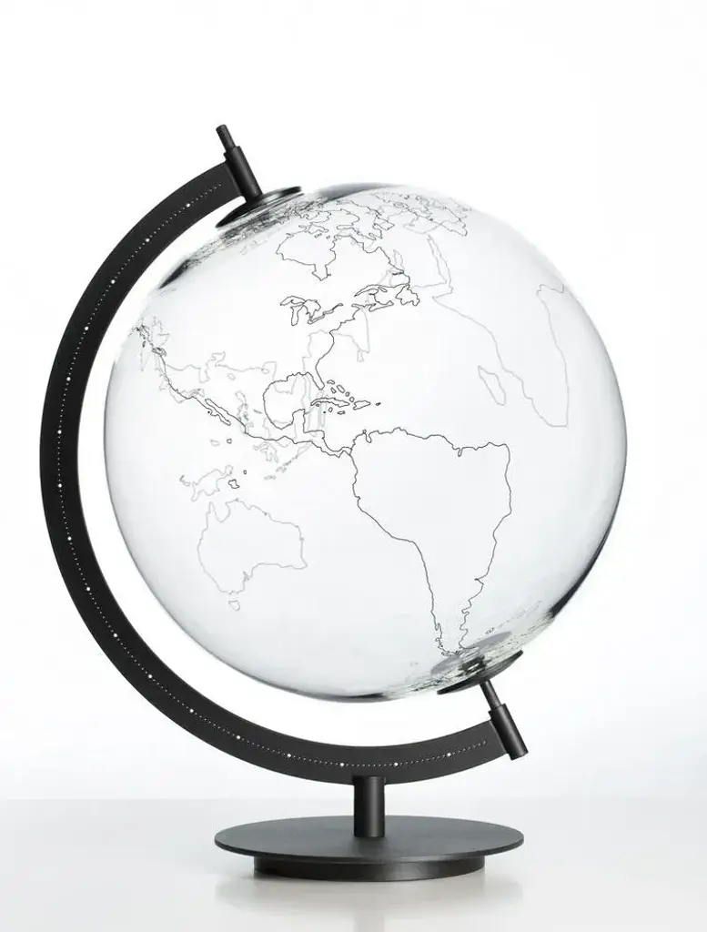 Gio tirotto realizes the project coexist: the mod. Ground globe and the mod. Sky stellar map, two objects complementar as only sky and heart can be, where the transparent glass allows to look to the world and the stars in their entirety, overlapping far places close in the blink of an eye, underlining both their simmetries and differences.