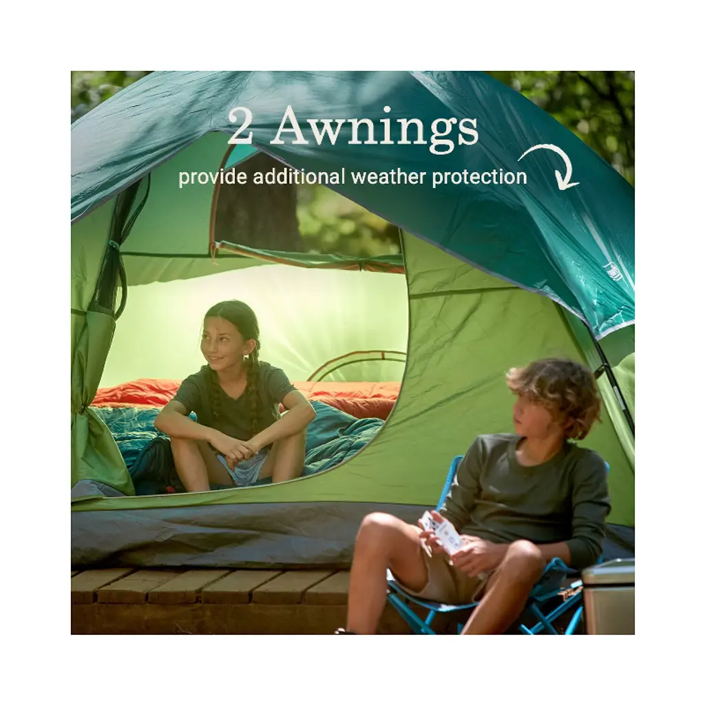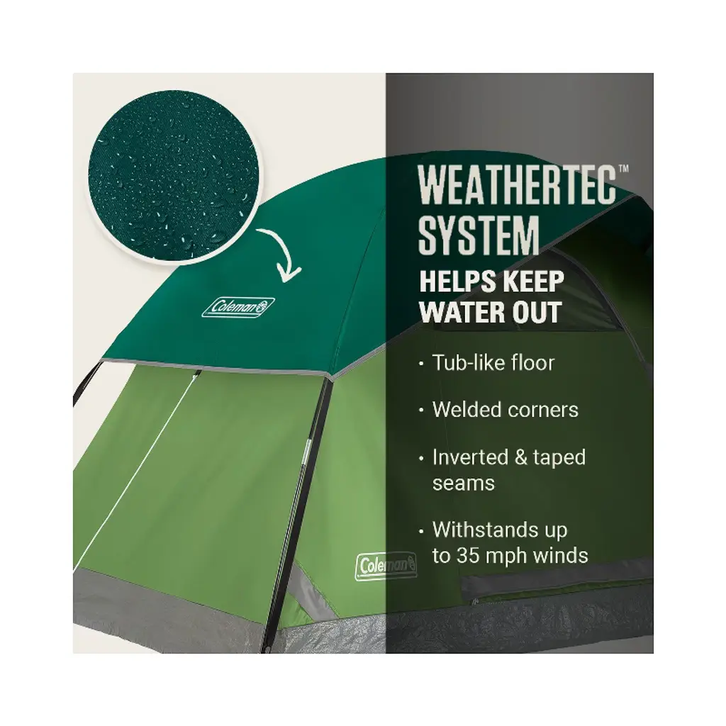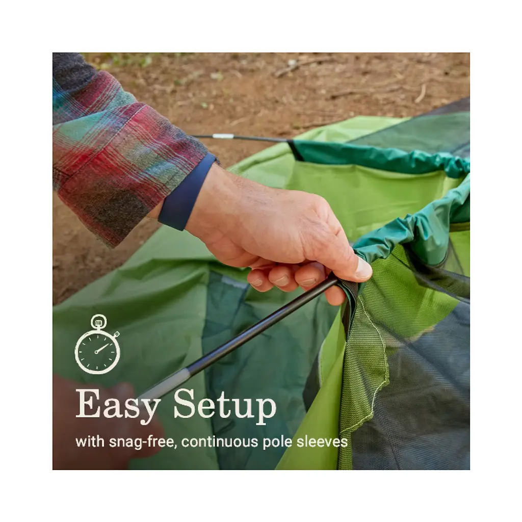 Meet the Sundome tents designed to make your next camping trip even better than before. Showers in the forecast? We made sure the Sundome 4-Person Camping Tent’s WeatherTec™ system helps protect against rain and wind whether you’re at the campground with family or in the backcountry with friends. Get to the epic hikes or epic camp meals faster—the tent sets up quickly thanks to the snag-free, continuous sleeves.