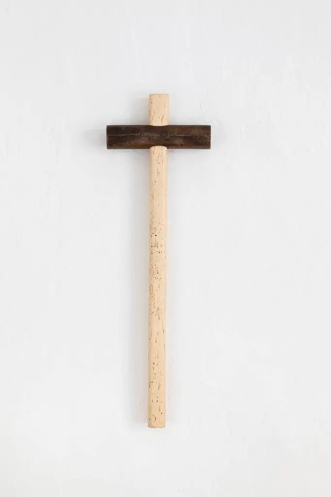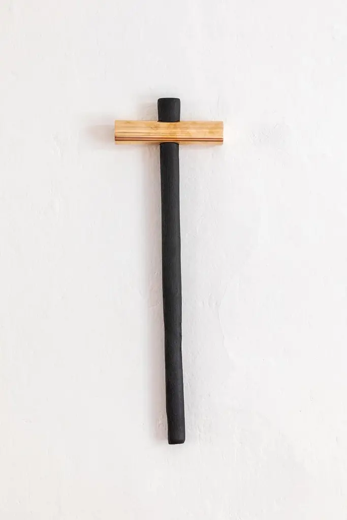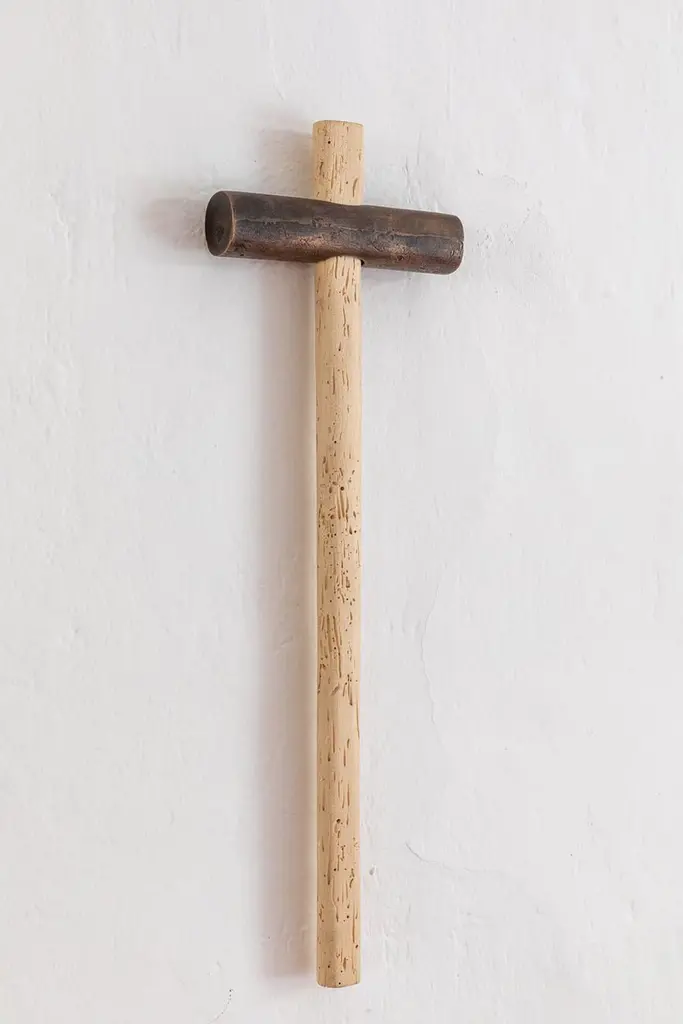 Crocemartello Cross Hammer by Secondome Edizioni and Studio FDesigner: Giulio Iacchetti.Dimensions: D 3,5 x W 16 x H 50 cm.Materials: Solid woodworm maple wood and bronze.Collection / Production: Secondome + Studio F. Available in all kinds of solid wood and in natural or black finishes. Please contact us.Wooden handle and bronze head meet to create an object with a dual nature. What is originally a traditional carpenter’s hammer takes on the appearance of a cross, combining the practicality of an everyday object with the symbolic function of the cross. With the same tool it is possible to drive a nail into a wall, and then hang the cross/hammer onto a wall, ready in waiting for its next use.THE GALLERYSecondome is a Design Gallery focused on contemporary designers and innovative projects worldwide.Founded by Claudia Pignatale in 2006, Secondome produces its own collection of Furniture and objects working to launch experimental designers, artisans and master craftsmen. Its mission lies in highlighting both the high quality manufacture of the Made in Italy brand and the originality of products, emphasizing the tradition of Italian craftsmanship whilst breaking the mold of lifeless objets d’art.The artisanal nature of Secondome’s production makes each piece individual and highly personalized.