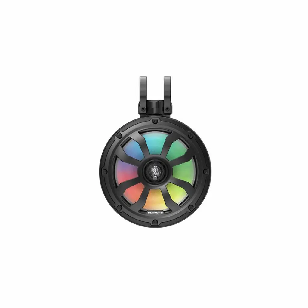 POD10F4B - 10" 2-Way Marine Tower Speaker w/Titanium Dome Tweeter (Black) Enhance your marine audio experience with the Diamond Audio 10" 2-Way Marine Tower Speaker in sleek black. Designed for optimal performance and style, these speaker pods deliver clear, high-decibel sound that takes your outdoor audio setup to the next level. Crafted to meet IP65 marine grade standards, these speaker pods are built tough to withstand the harshest marine conditions. Constructed with UV-treated ASA high impact thermoplastic, they are resistant to sun, salt, and water exposure. The stainless steel mesh grills not only provide a sophisticated look but also ensure the speakers are well-protected. Featuring waterproof Kevlar cones and a high-energy neo motor system, these speakers produce powerful, crystal-clear sound. Enjoy top-notch audio quality even in challenging outdoor settings, thanks to the innovative technology packed into these pods. Stand out with integrated RGB LED lighting that adds a vibrant touch to your audio system. Create a customized lighting atmosphere for any occasion, whether you're partying on your boat or relaxing by the water. Specifications: - 1” Tweeter Titanium Dome - US Manufactured 2” High Temperature Coated Voice Coil - 200W RMS/400W MAX Power Handling - IP65 Marine Grade Compliant, 100% UV Stable - Y35 Motor Structure With Max Xmax Suspension - Molded injection ASA Grill and Enclosure With UV Coating - 3/16 Stainless Metal Mesh Grill - Integrated DIGITAL LED Lighting In Speakers and Enclosure - 6” Passive Design For Bass Boost - Radial Zip Ring (RZR) Cone for Expanded High Frequency Reproduction - Flat or Pipe mounting Bracket option - DADLED (Not Included) Must Be Used For LED Lighting Feature