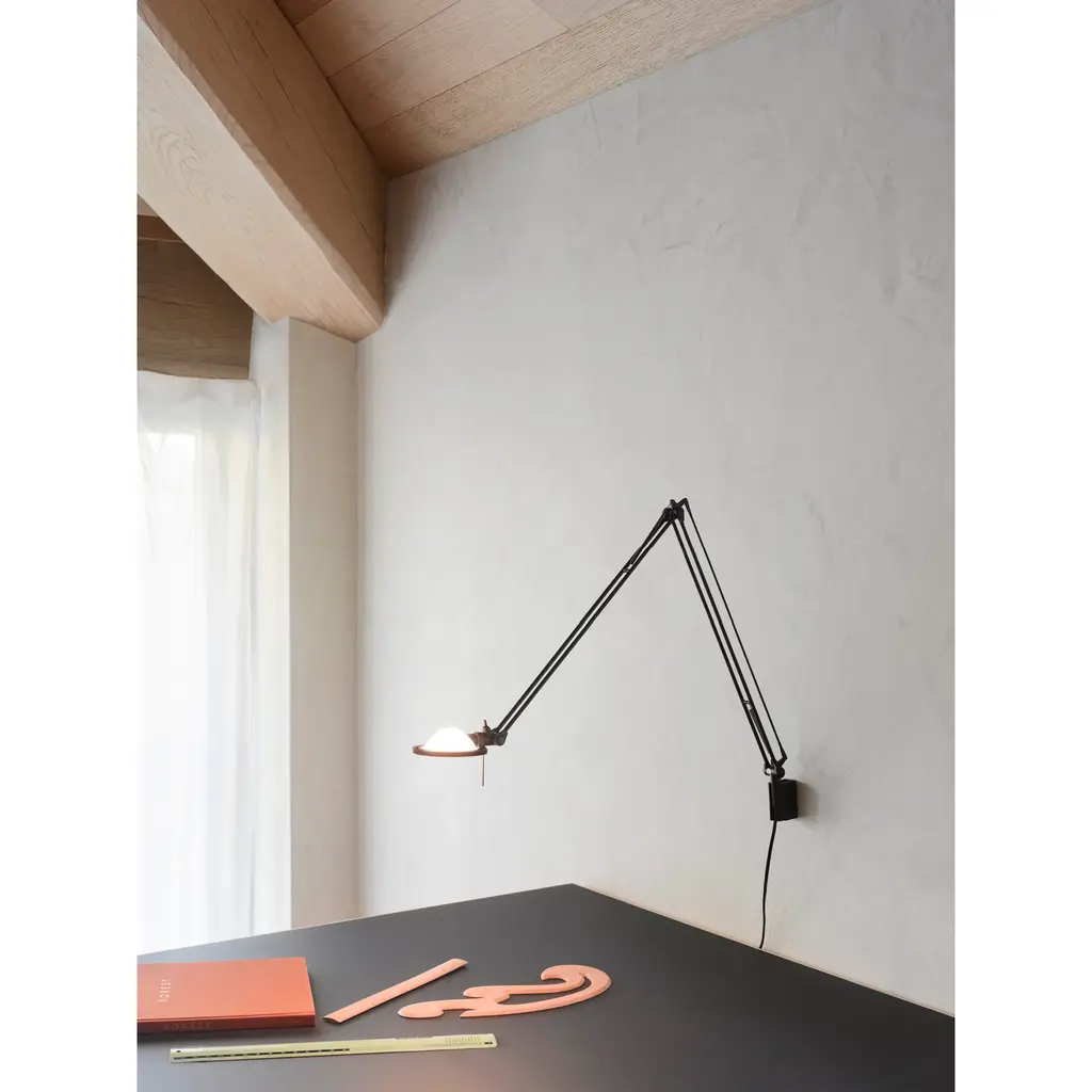 With a sleek and elegant form, this Dome Adjustable Wall Lamp Berenice by Luceplan is designed to meet all functional needs one can wish for in a reading lamp. Its thoughtful design offers pliable, precise movement that allows you to direct light exactly where it's needed. The lamp's stable base ensures reliable positioning, while the smoothly articulated arms make adjustments effortless, offering maximum flexibility for any room. It provides focused illumination with minimal effort, enhancing both function and aesthetics in any setting.