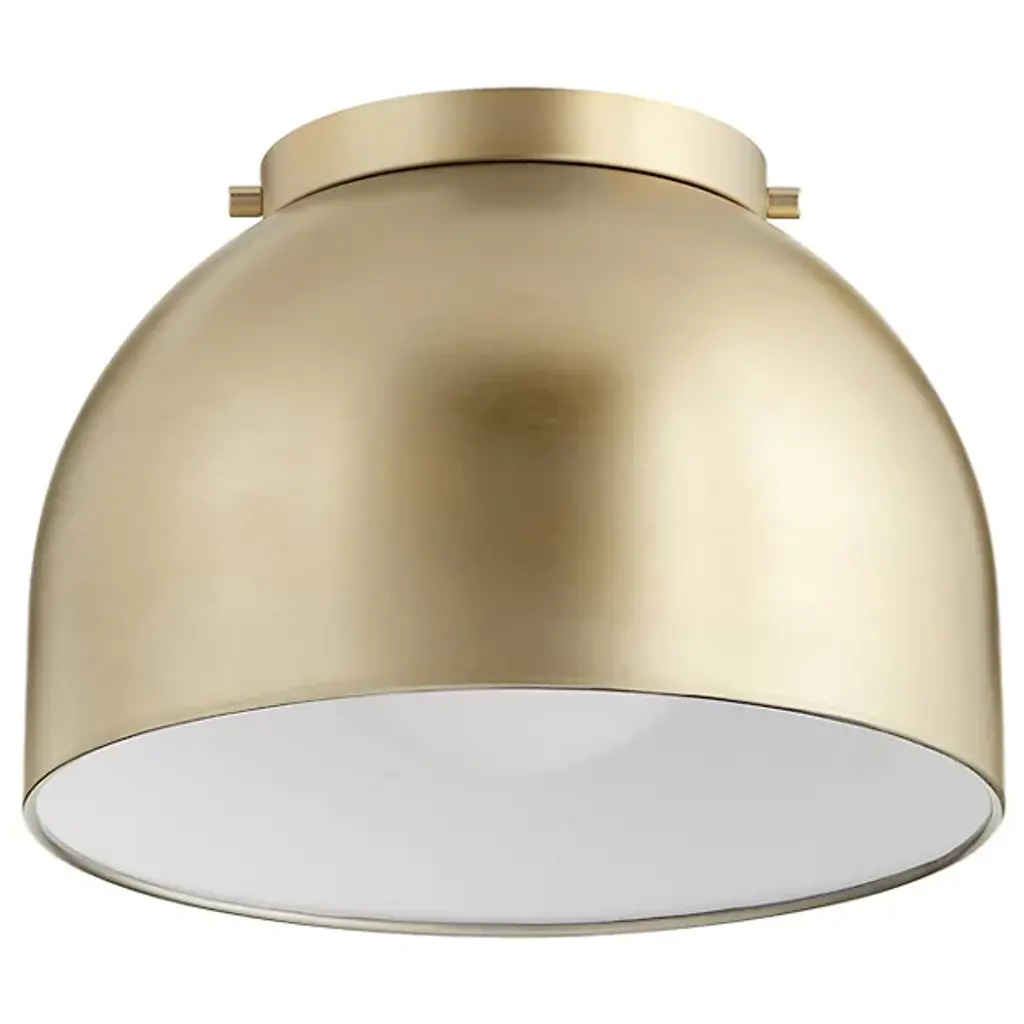 A simple way to dress up and brighten spaces, the Dome Flushmount by Quorum International is a chic addition to your home. A beautifully finished, metal dome-shaped shade directs an even layer of downward cast illumination onto surroundings. With a minimalistic and smooth silhouette, this neatly designed piece has a lighter interior finish, providing a surface for light to brightly interact with as it also creates a subtle two-tone feel, adding some charming flair wherever it brightens surroundings.