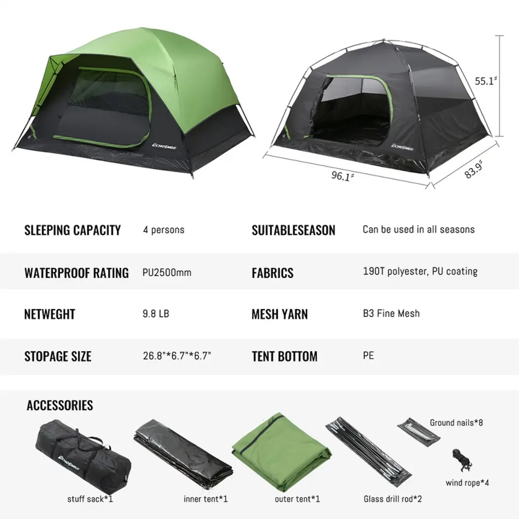 Enjoy the great outdoors without worrying about unpredictable weather with this waterproof camping tent. Made from high-quality, durable materials, it’s designed to keep you dry and comfortable in both sunny and rainy conditions. Perfect for camping trips with family or friends, this tent is spacious, easy to set up, and built to last through multiple seasons of adventure.